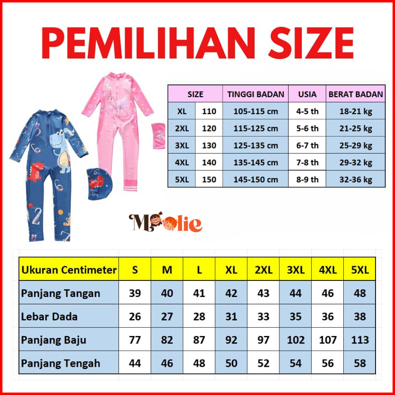 Mo28 Moolie Baju Renang Jumpsuit Panjang Anak Perempuan Dan Anak Laki-laki Long Swimsuit