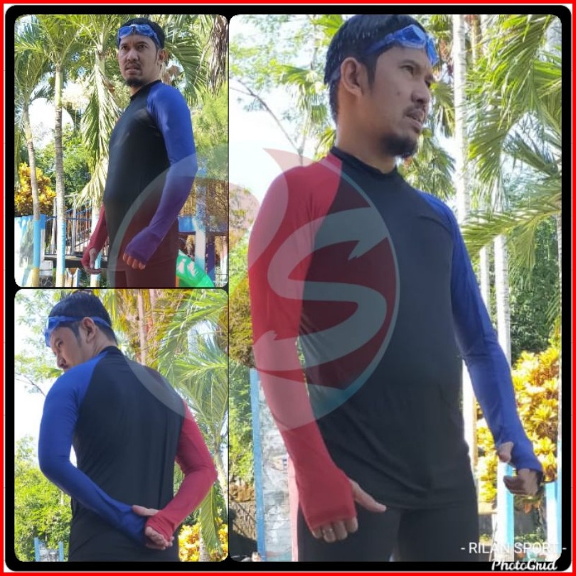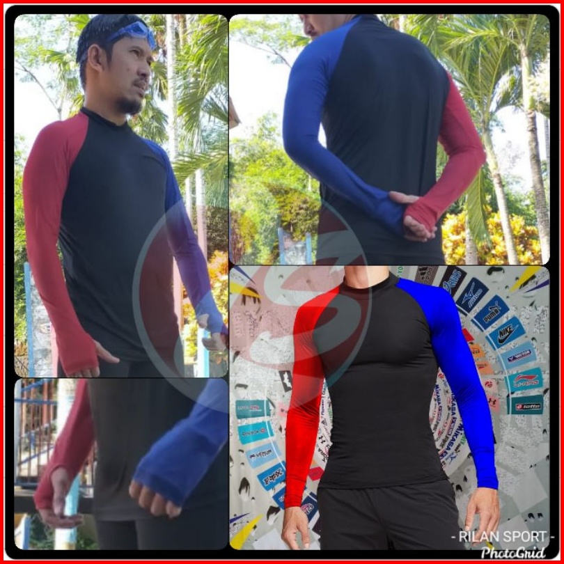 Baselayer Manset Lengan Panjang Long Sleeve Atasan Olahraga Pria Pakaian Renang Diving Gym Csswim