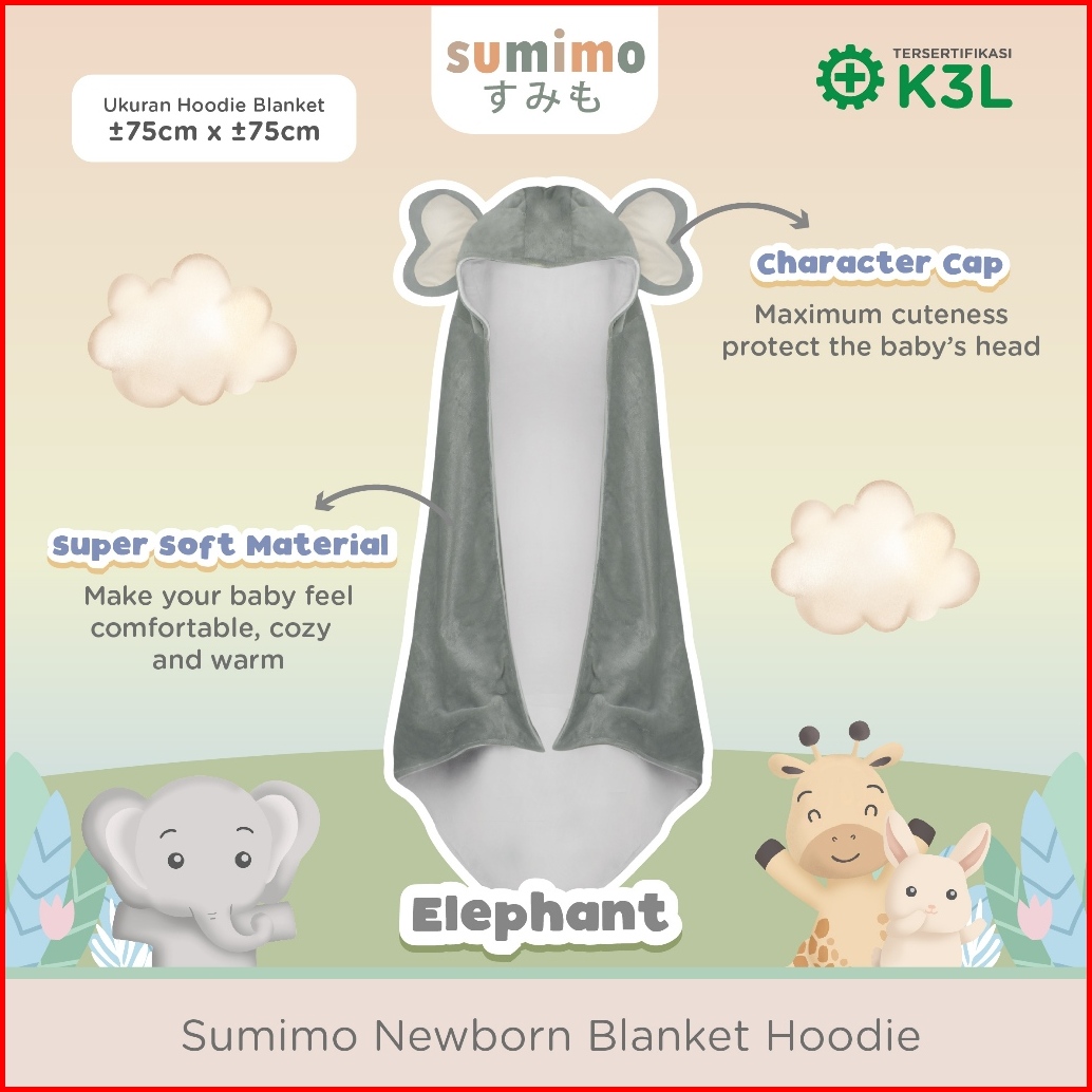 Sumimo Blanket Hoodie Baby Selimut Topi Bayi Karakter Lucu Super Soft Elephant