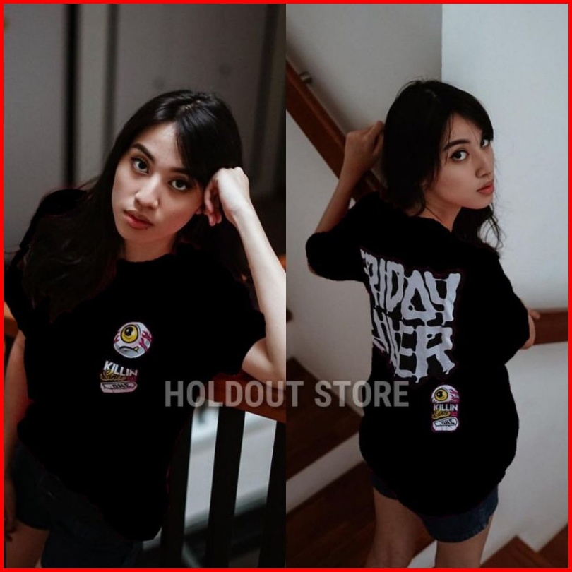 Kaos Tshirt Distro Friday Killer Mata Pink Mustard Merah Putih Hitam Lengan Pendek Cewek Cowok Terlaris Kaos Disto Bandu