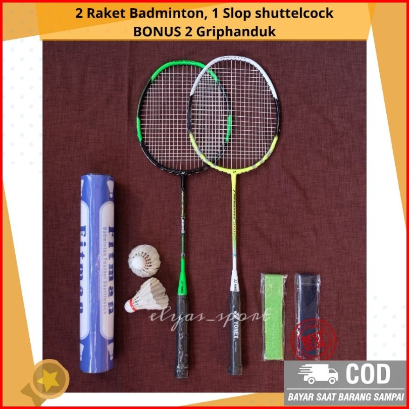 2raket + grip + tas, 2raket 12kok 2grip, 2raket 1tas 12kok, 2raket 2tas 12kok