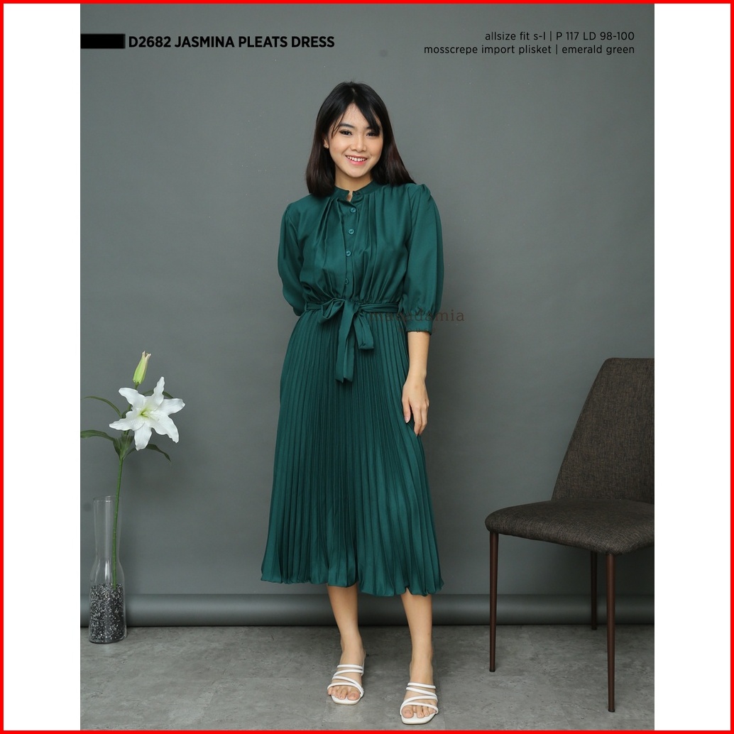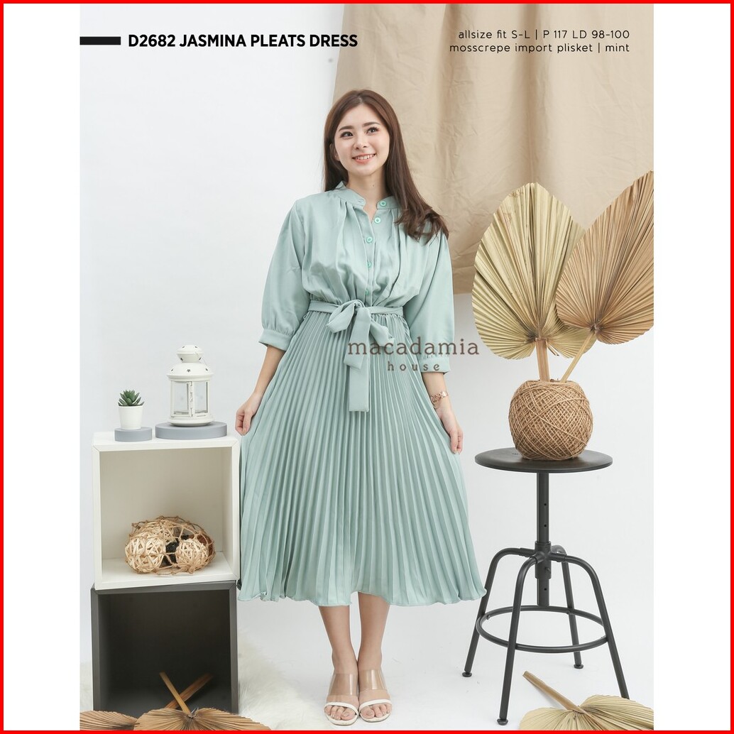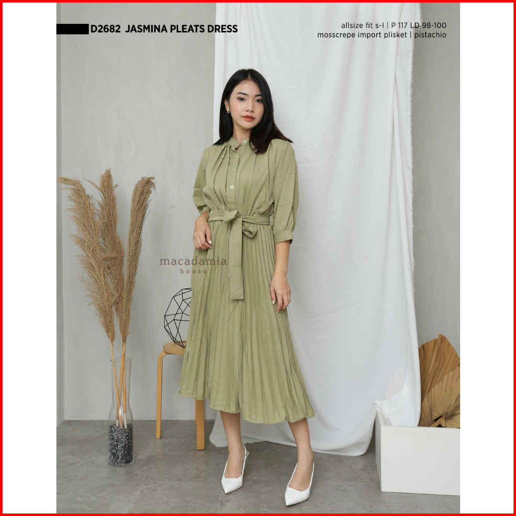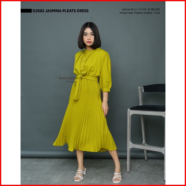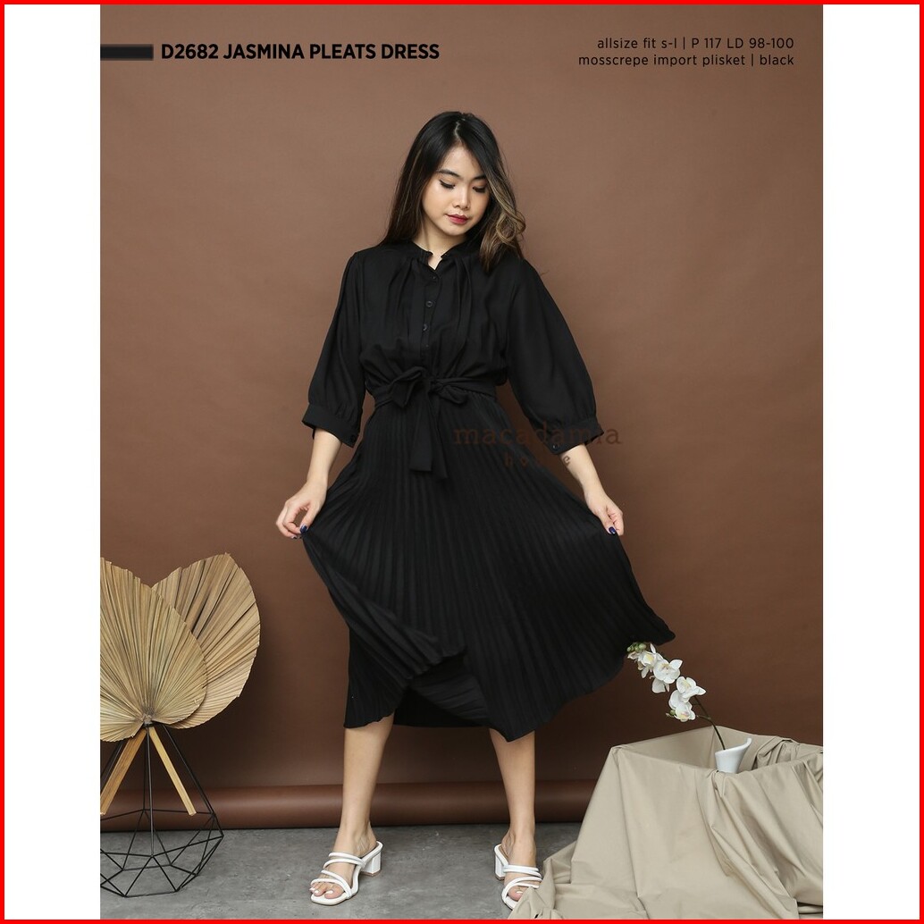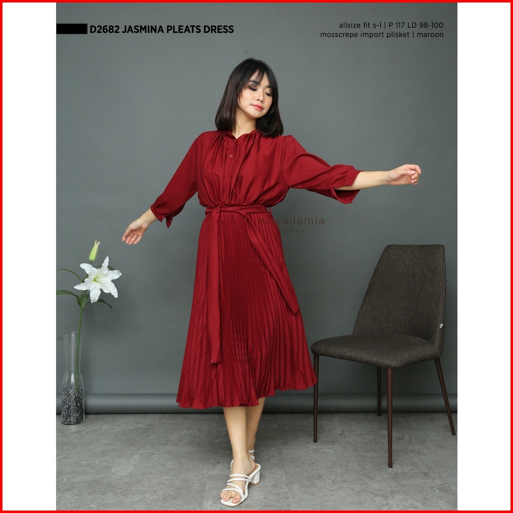 Macadamia House - D2682 Jasmina Pleats Dress - Fashion Wanita - Dress Midi Natal Christmas Xmas