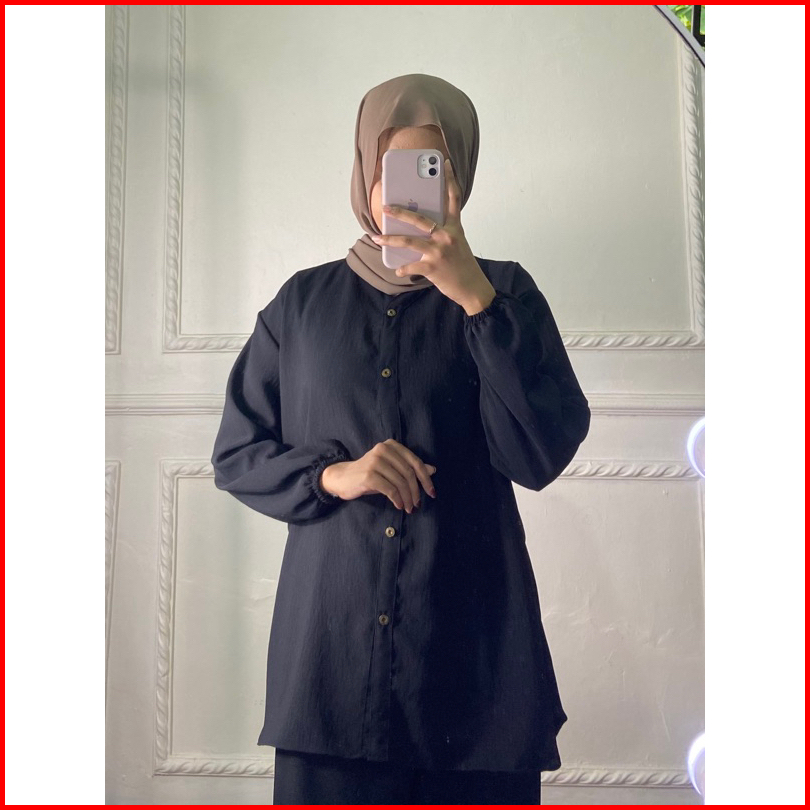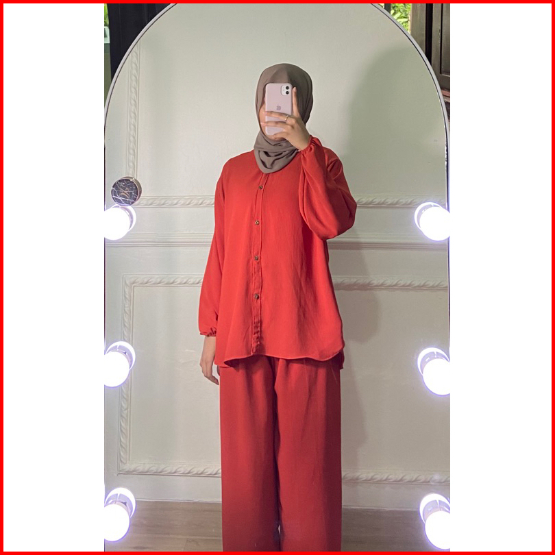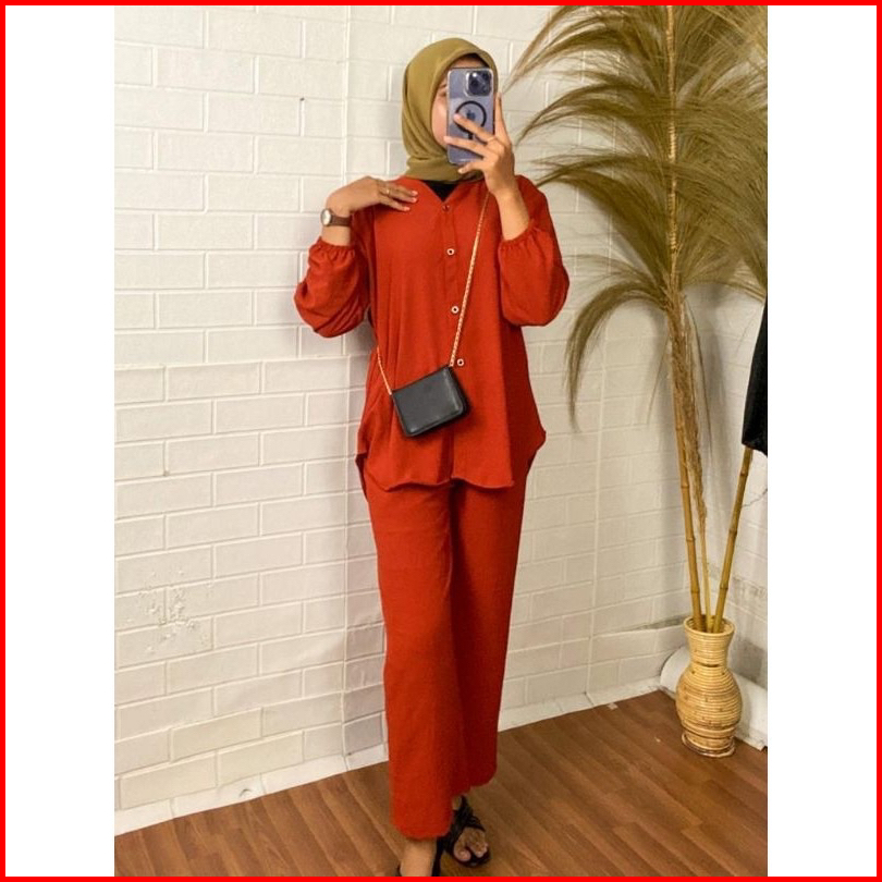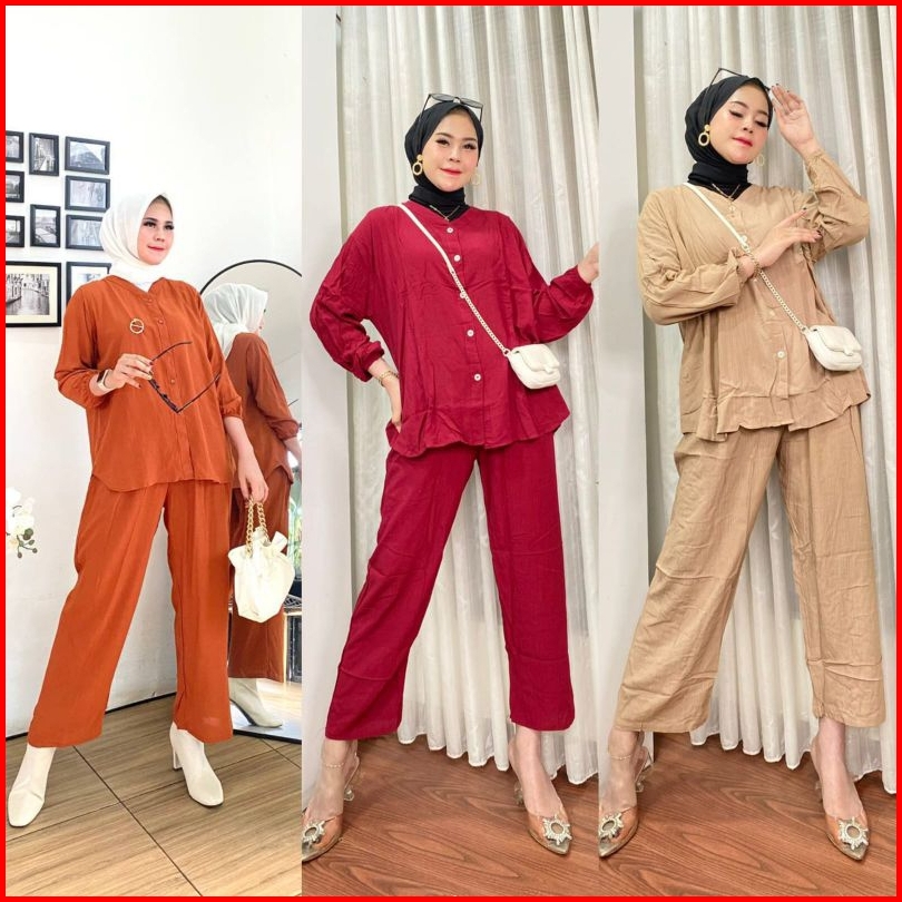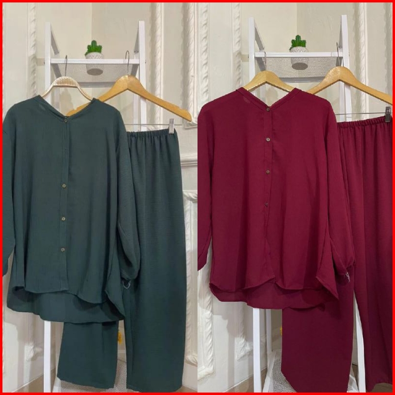Ratucollection07 Venda One Set Baju Setelan Wanita Cringkel Airflow Lengan Panjang