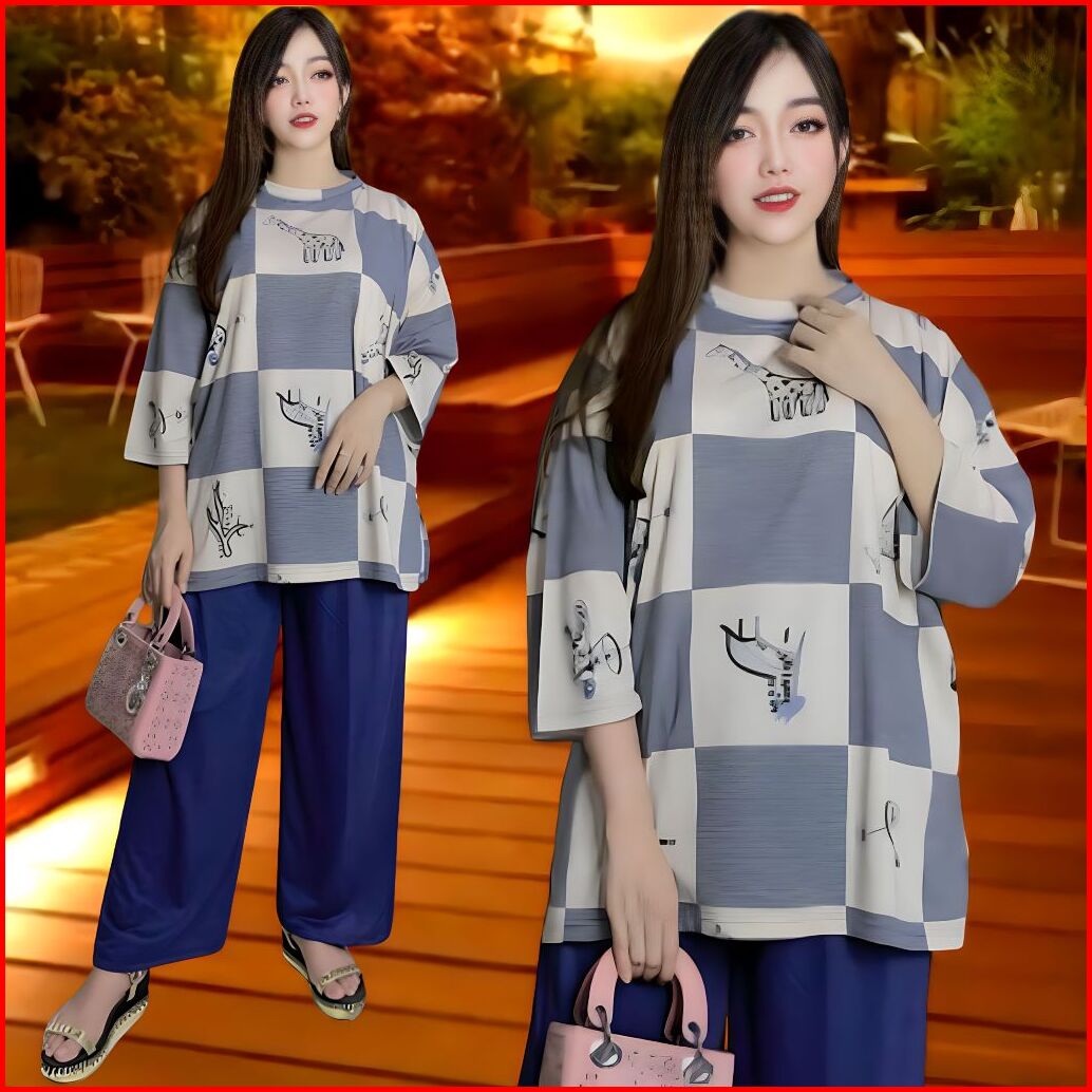 A8d1 Setelan Wanita Jumbo Ld 120 Ld 140 Atasan Wanita Dan Celana Kulot Wanita Baju Oversize Dewasa Motif Celana Panjang
