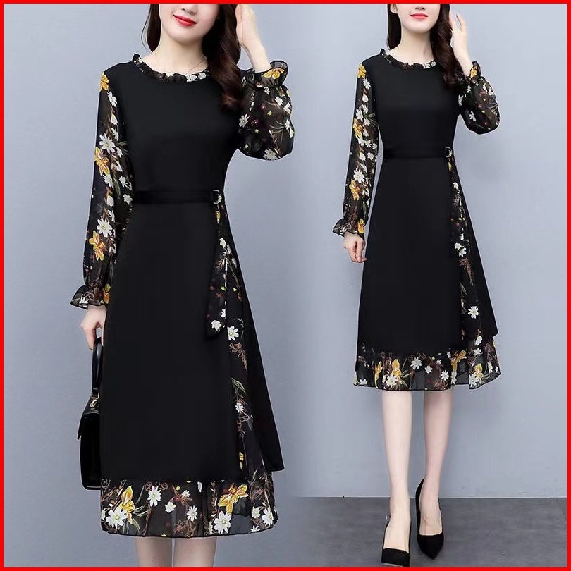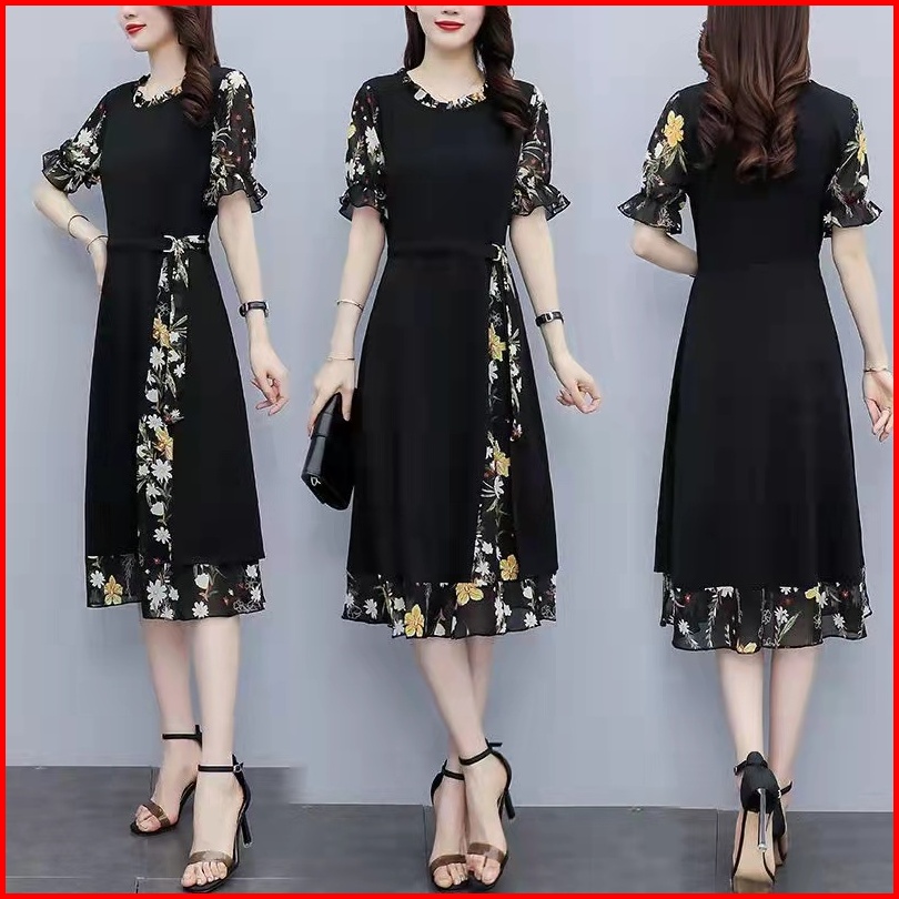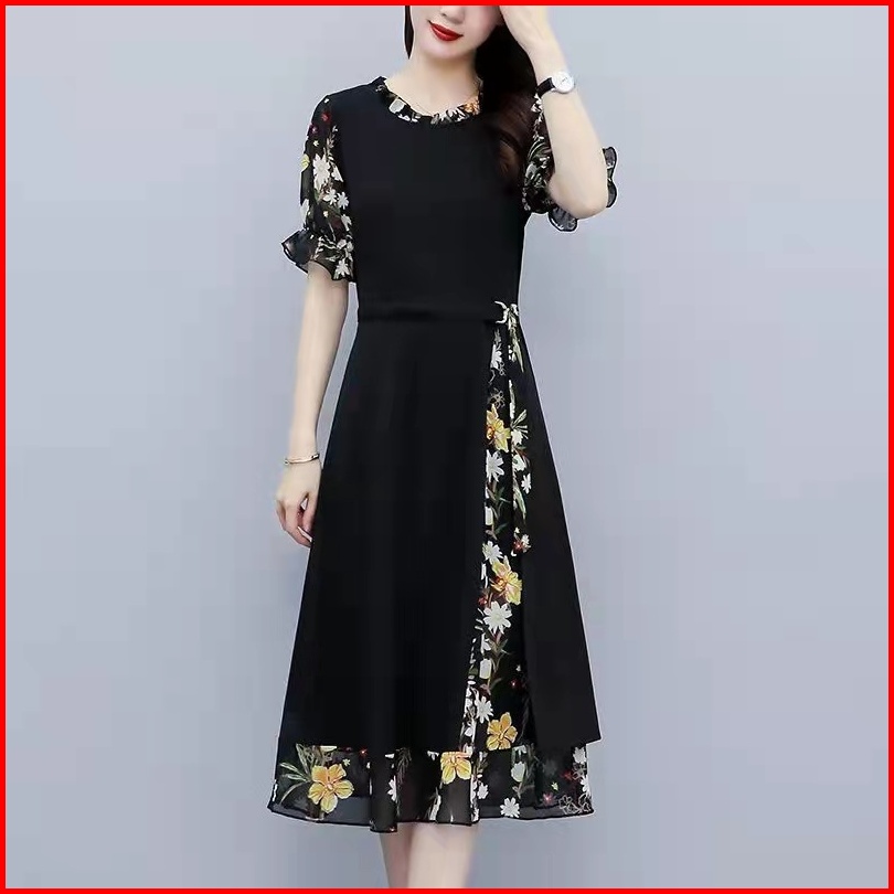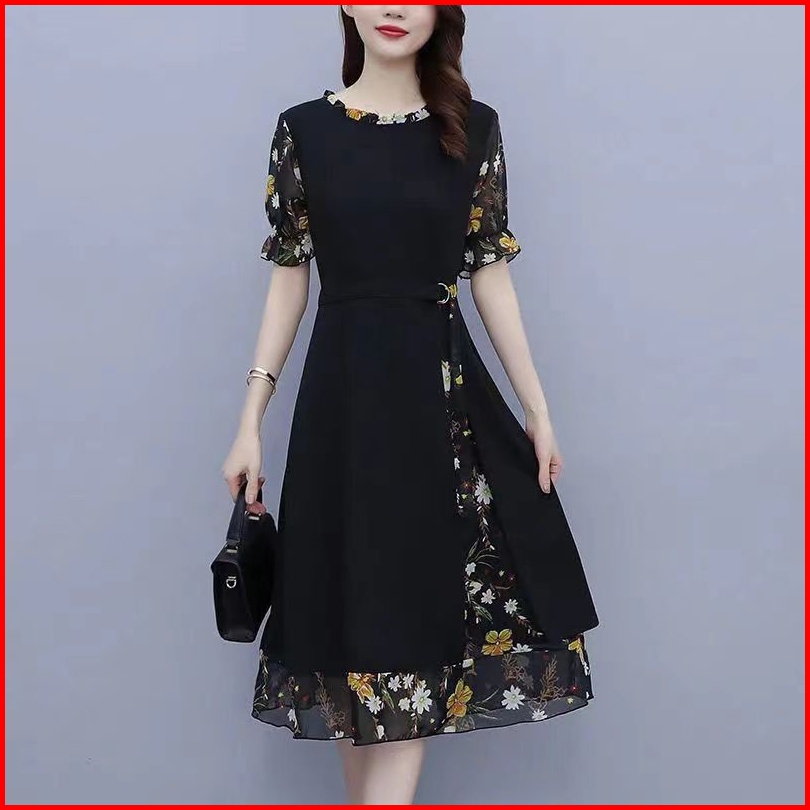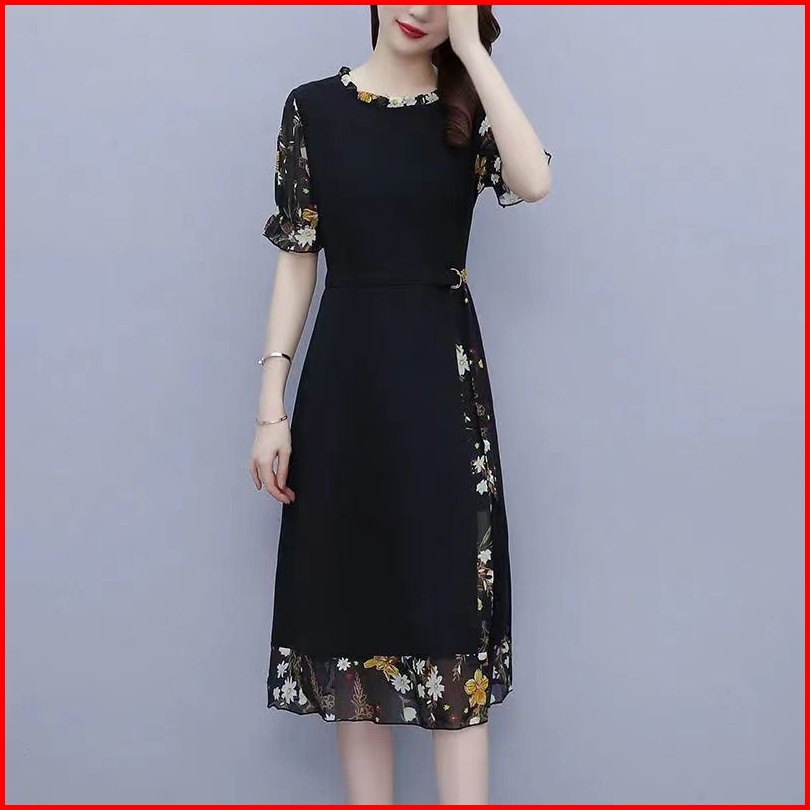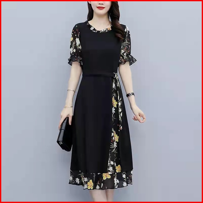 Sifon Jahitan Gaun Wanita Musim Panas Gaun Baru Populer Plus Ukuran Pakaian Wanita Gemuk Mm Slim Fit Dan Tipis Temperame