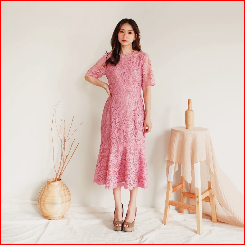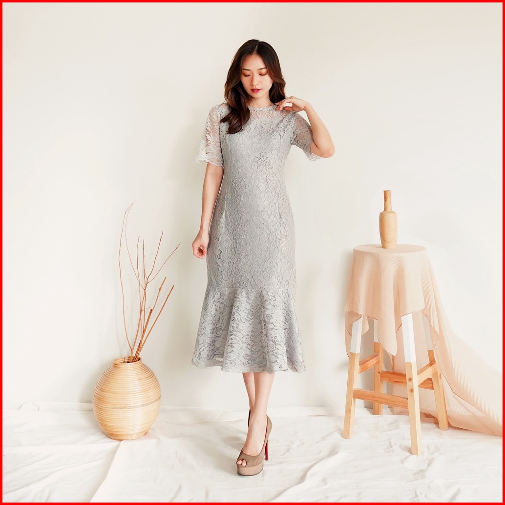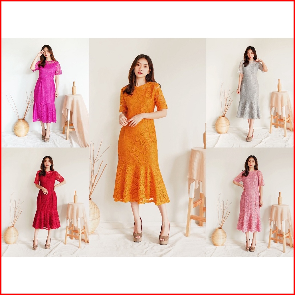 Real Pict Long Dress Pesta Party Midi Dress Kondangan Brukat Heyon