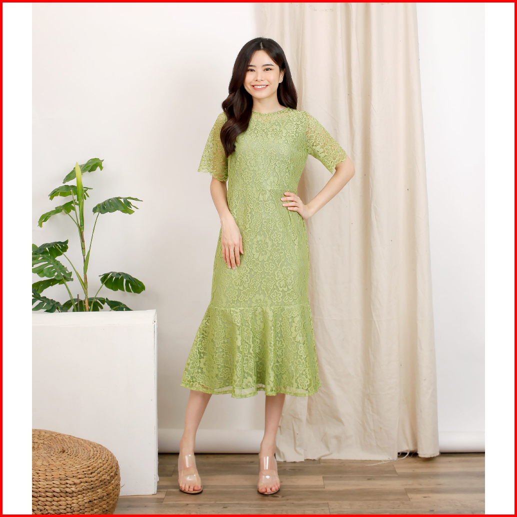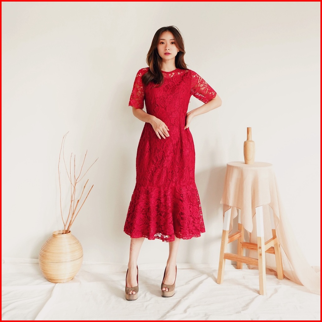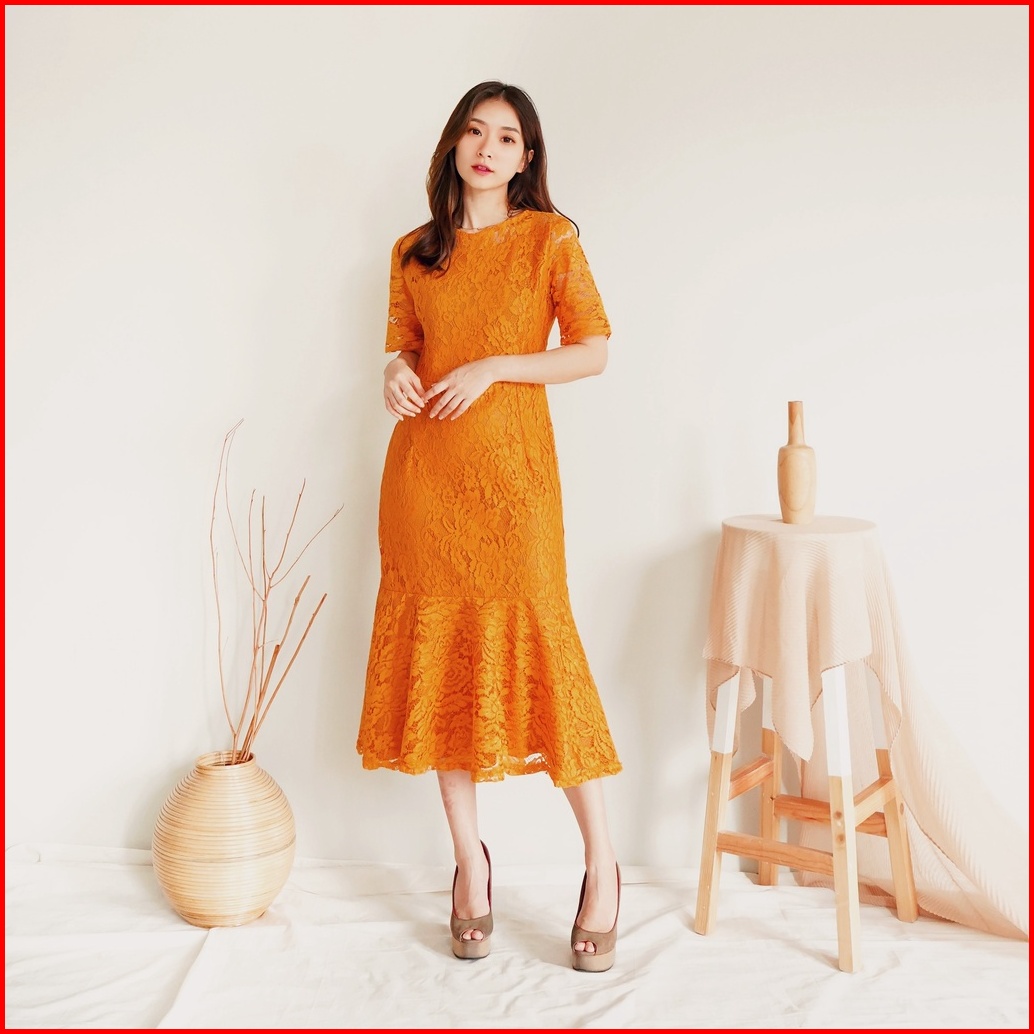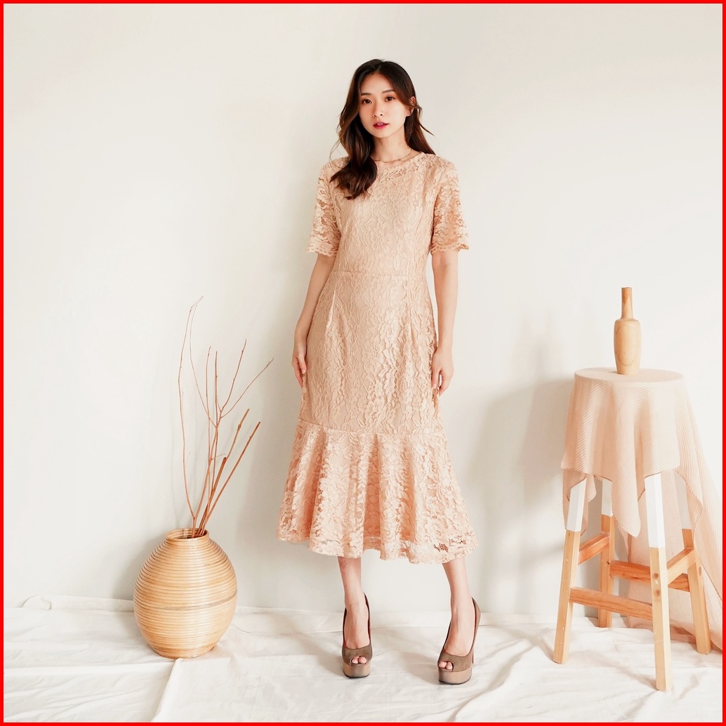 Real Pict Long Dress Pesta Party Midi Dress Kondangan Brukat Heyon