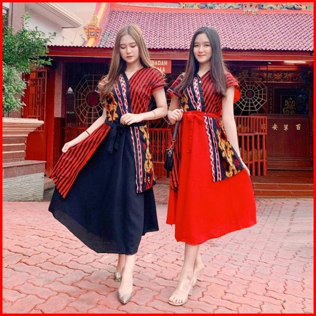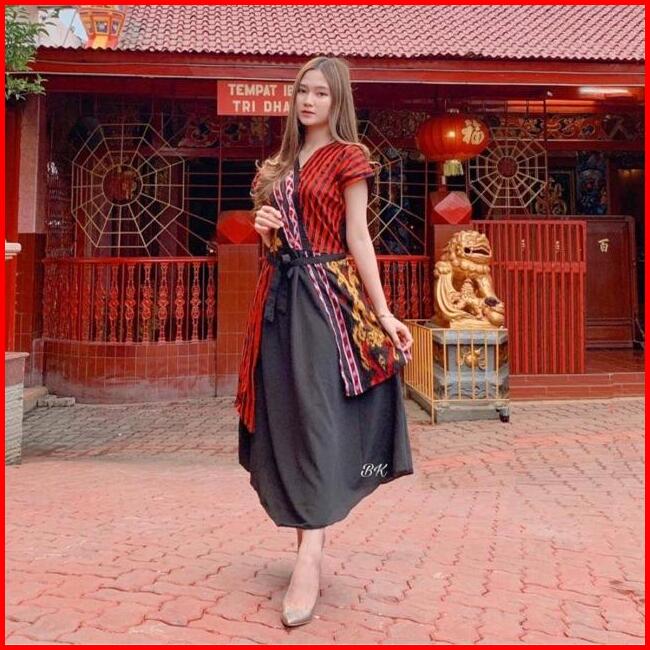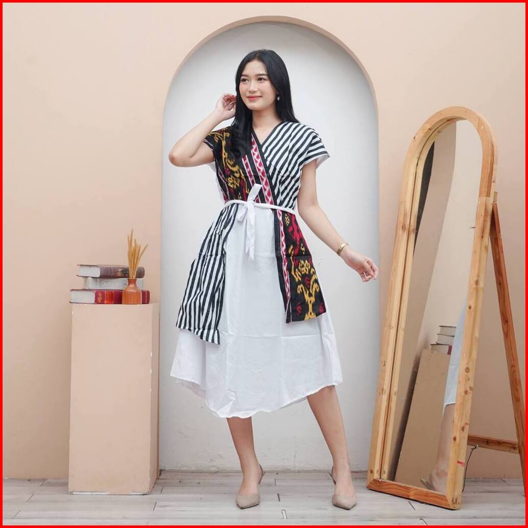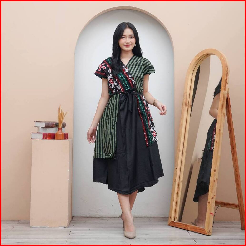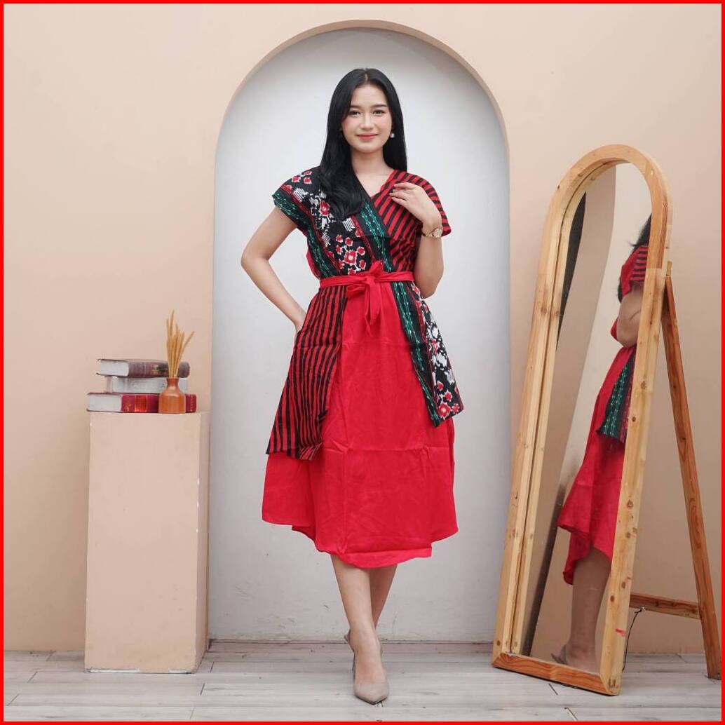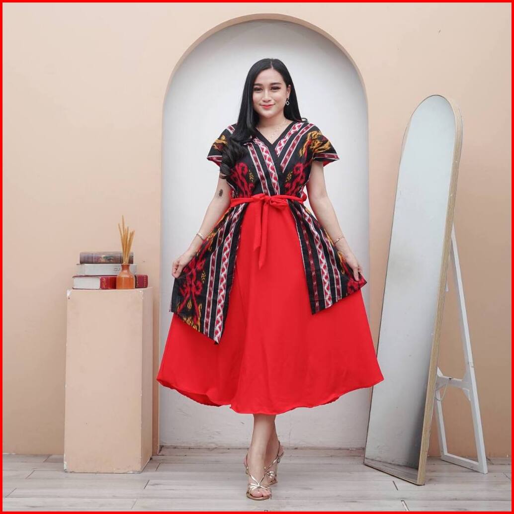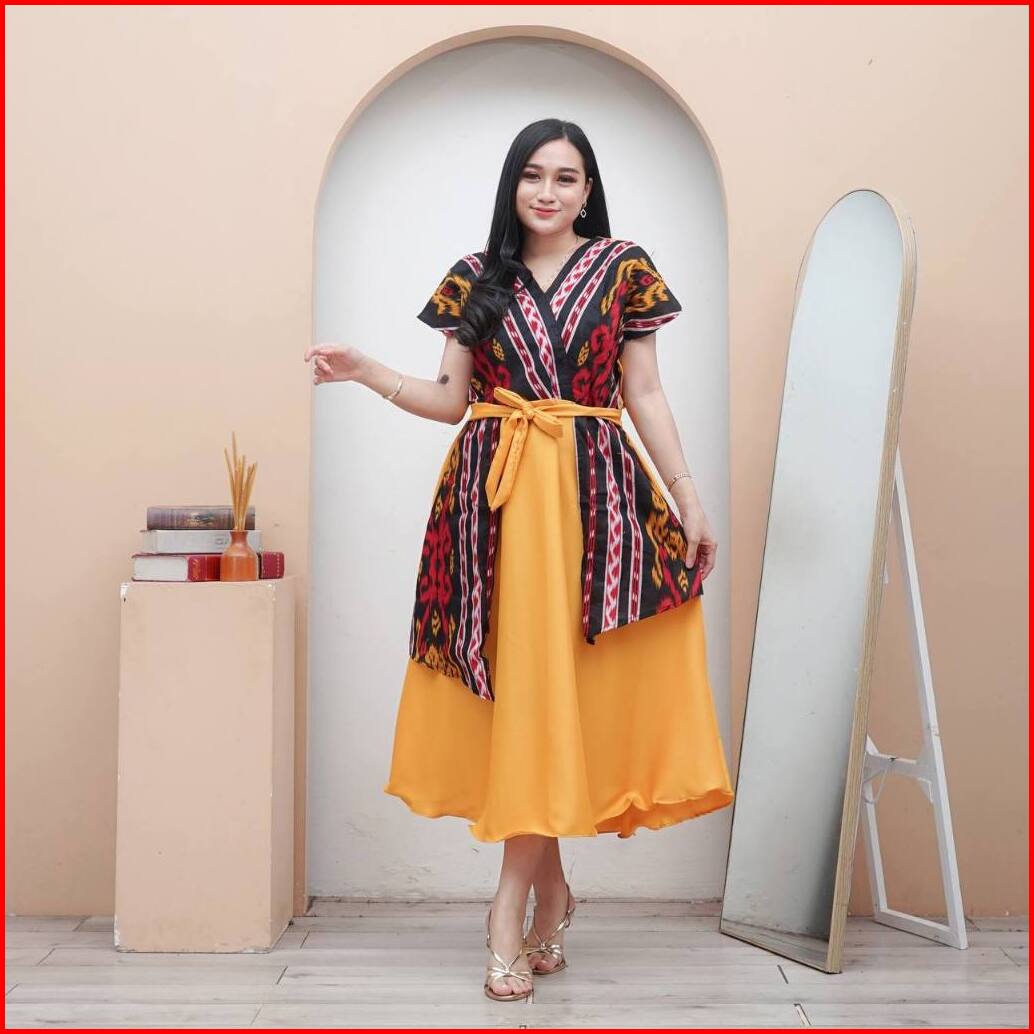 Keishan.id- Dress Ayamia Andin Batik Gaun Pesta Lebaran Natal Dress Kondangan Dress Tenun Dress Natal Dress Songket Dres