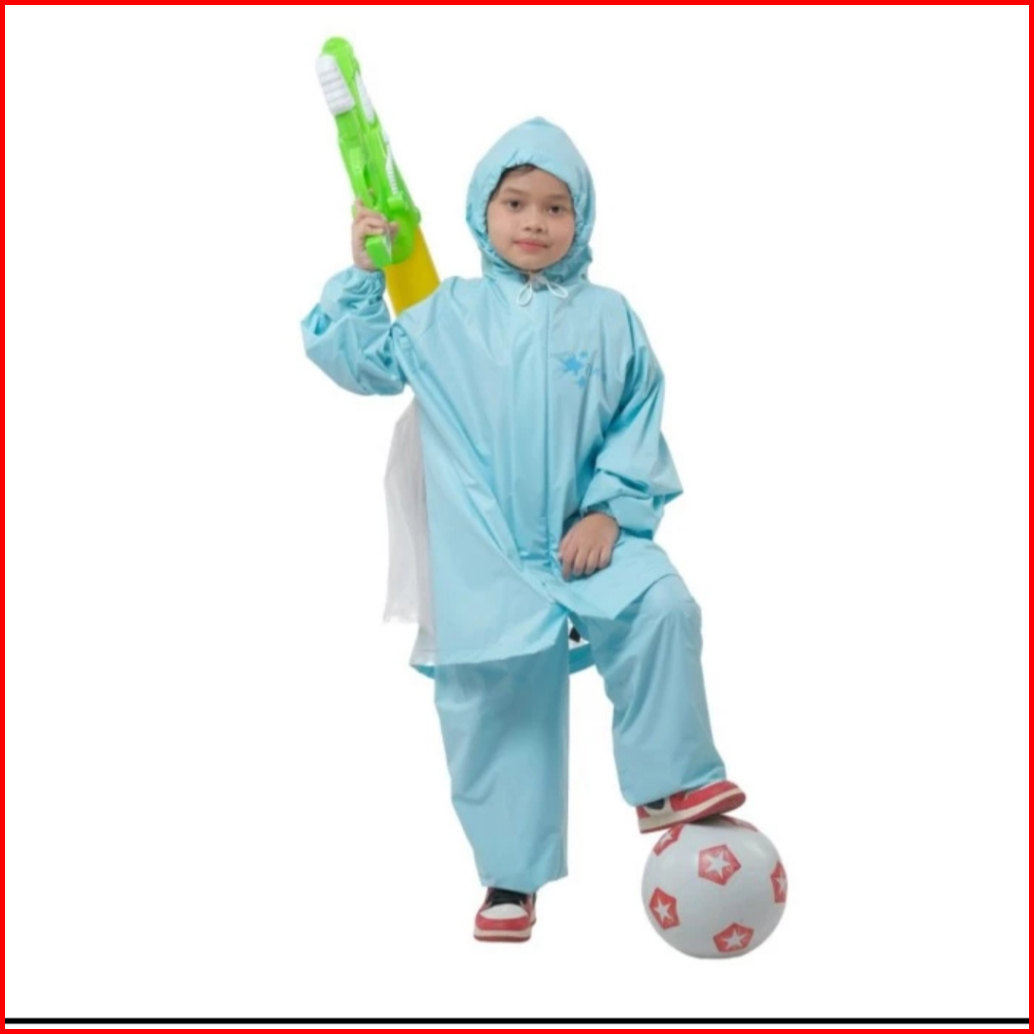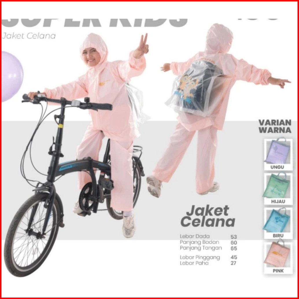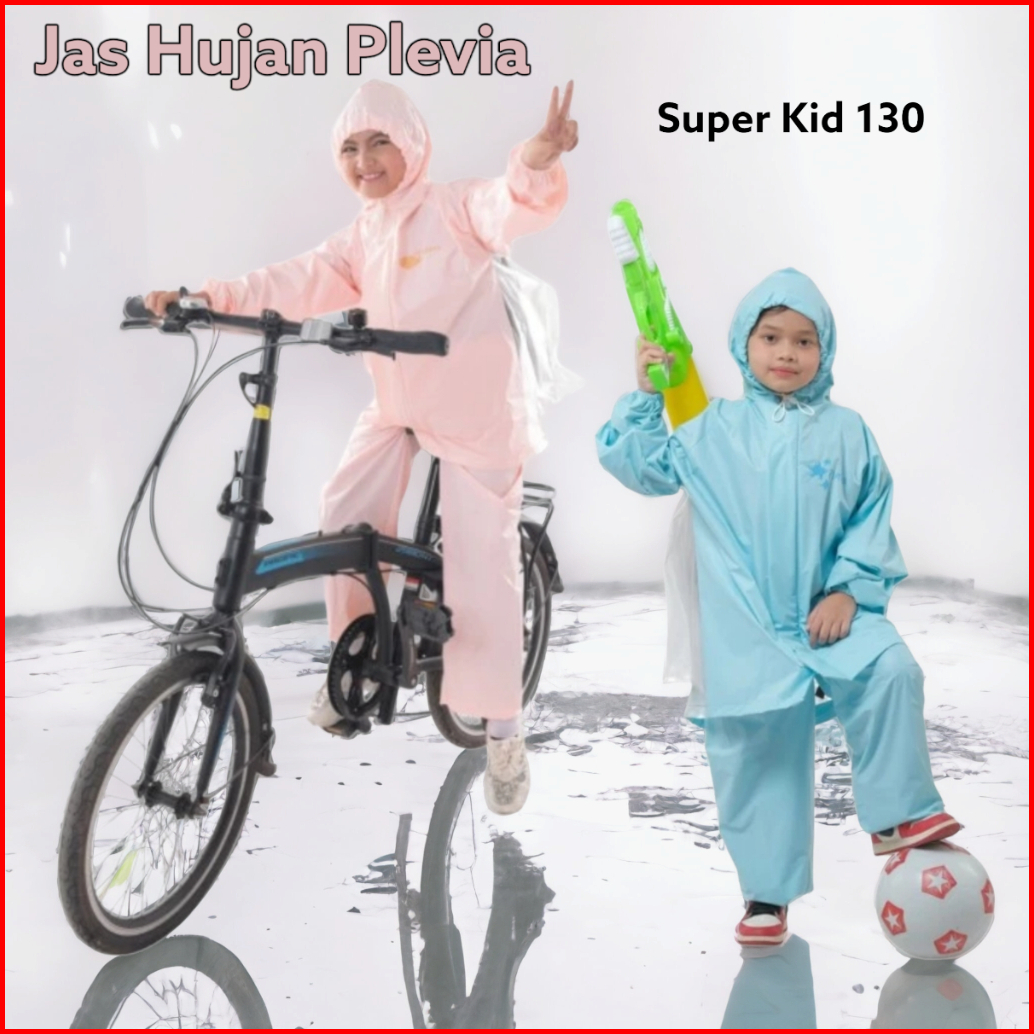 Jas Hujan Setelan Anak Cowok Cewek Tk Sd 4-12 Tahun Raincoat Jaket Celana Plevia Super Kids 130 Dengan Ruang Tas Belakan