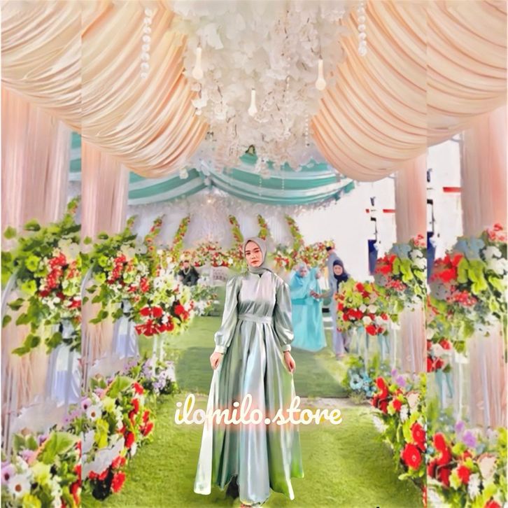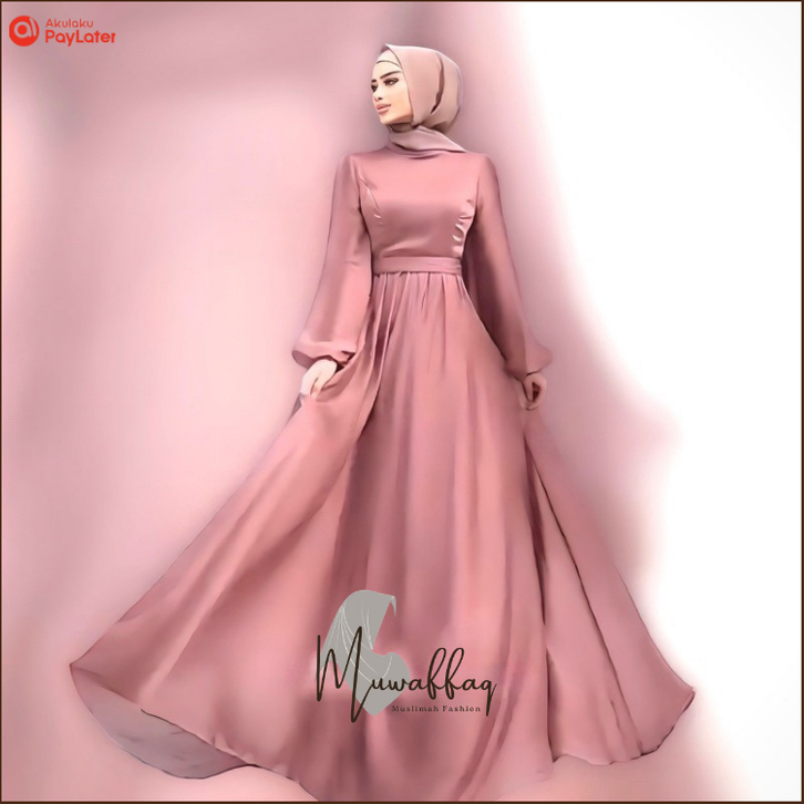 DRESS GAMIS WANITA SHIMER SILK ELEGAN PREMIUM FREE BROSS MEWAH FASHION MUSLIM WANITA FORMAL 2024 KEKINIAN MUWAFFAQ STORE