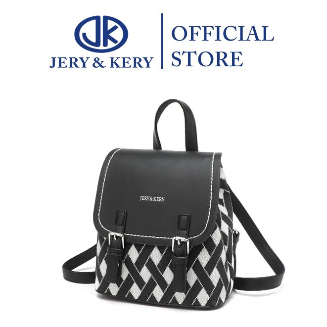 JERY & KERY - Tas Ransel Wanita Import Backpack Cewek Stylish Korea - Tweed belah ketupat Backpack #JK 6029