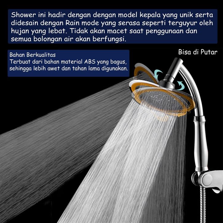 Kepala Shower Bulat Kamar Mandi Rainfall 6 inc Besar Shower Tanpa Bobok Termurah