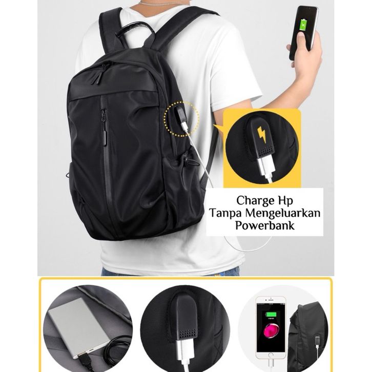 TAS PRIA 70002 - TAS RANSEL NILON POLOS TAS PRIA KERJA KULIAH SEKOLAH TRAVEL HIKING BACKPACK TAS RANSEL LAPTOP - E