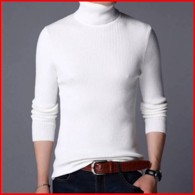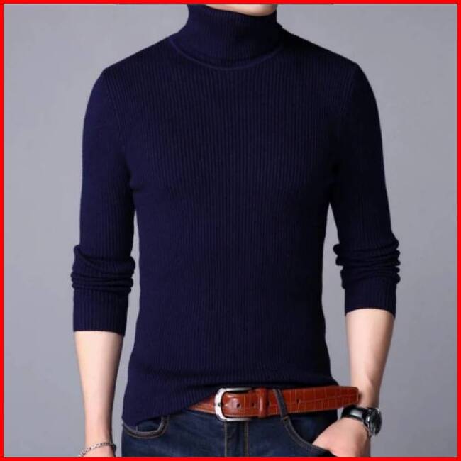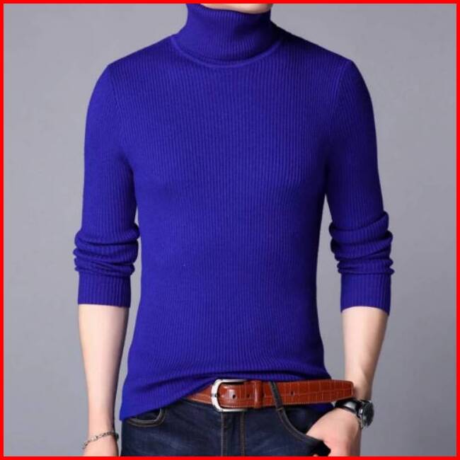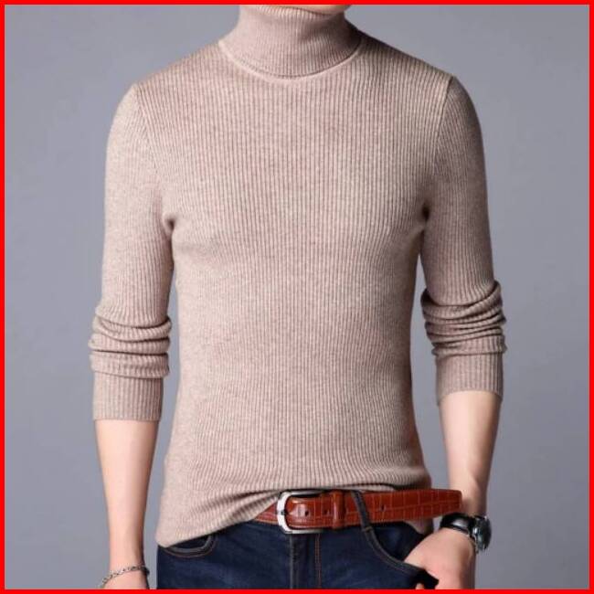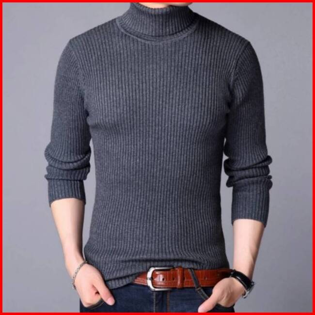 Sweater Rajut Pria Kerah Tinggi Motif Jalur Polos Sweater Turtle Neck 100 Cotton