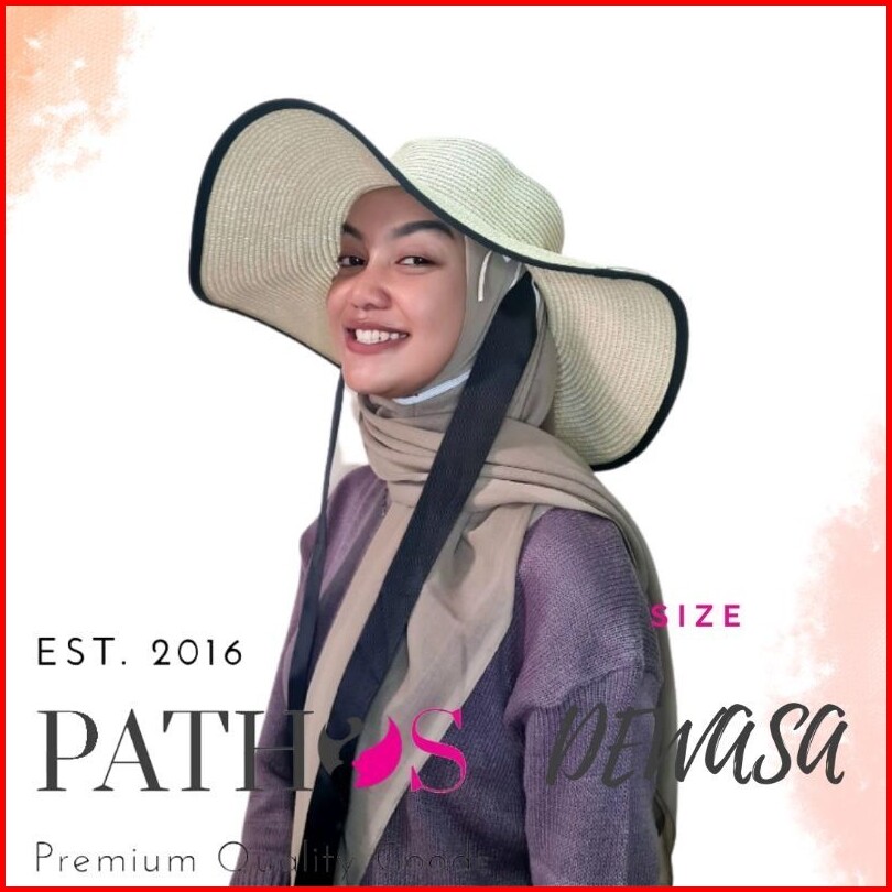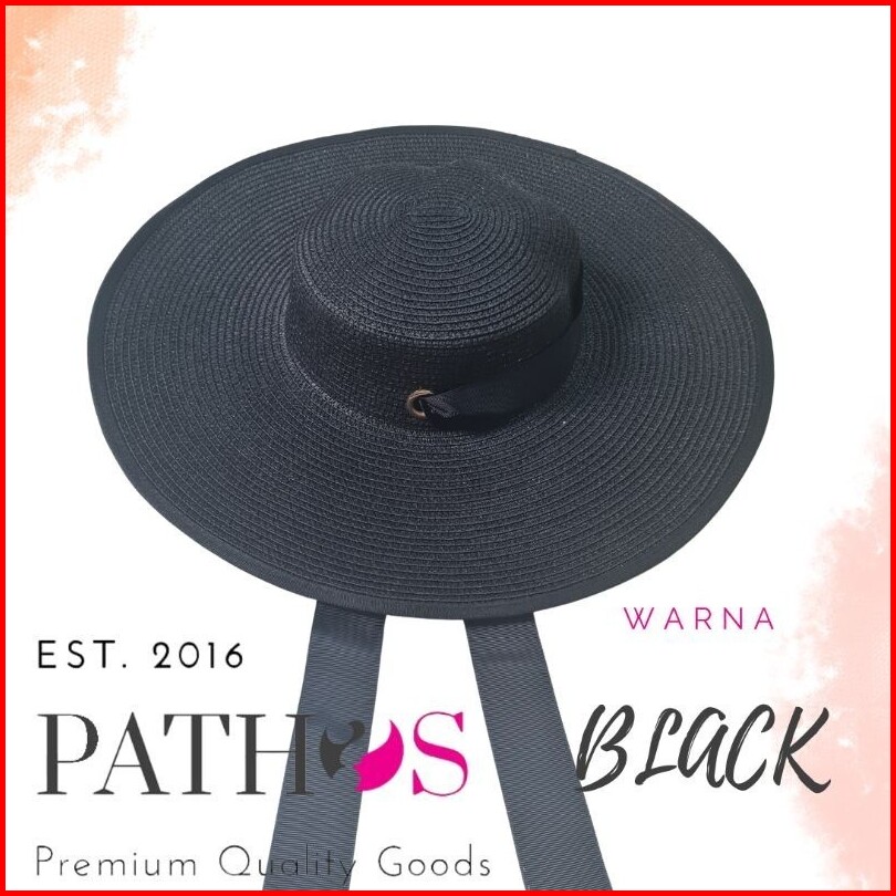 Topi Pantai Wanita Tali Leher Hitam Prewedding Bahan Papper