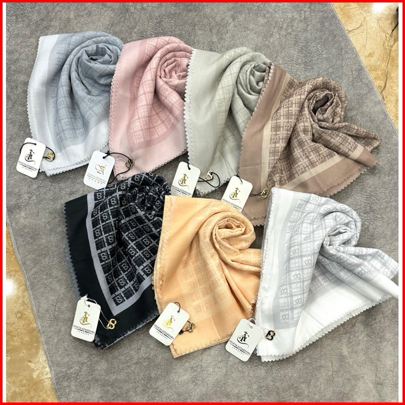 Jilbab Segiempat Buttonscarves Printing Monogram Terbaru Logo B Terlaris By Felicia Azzarenka