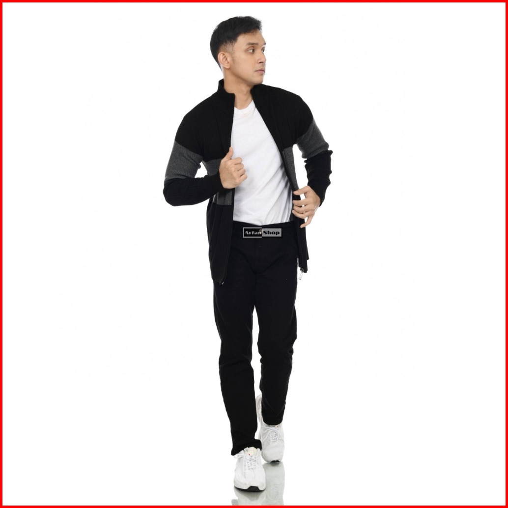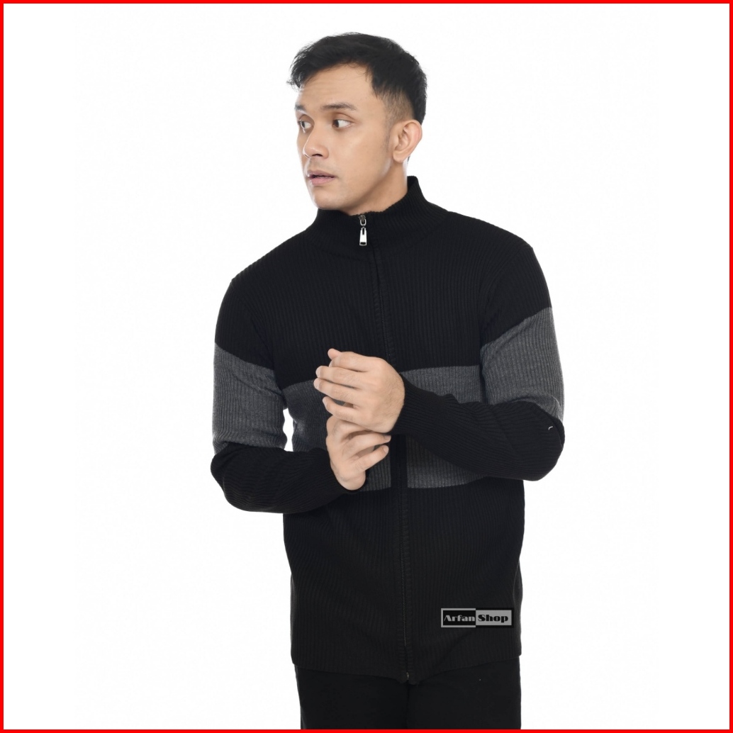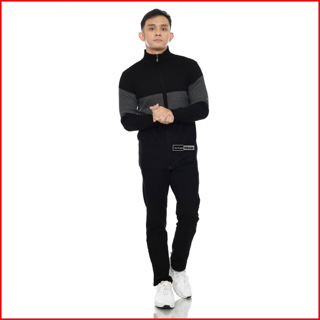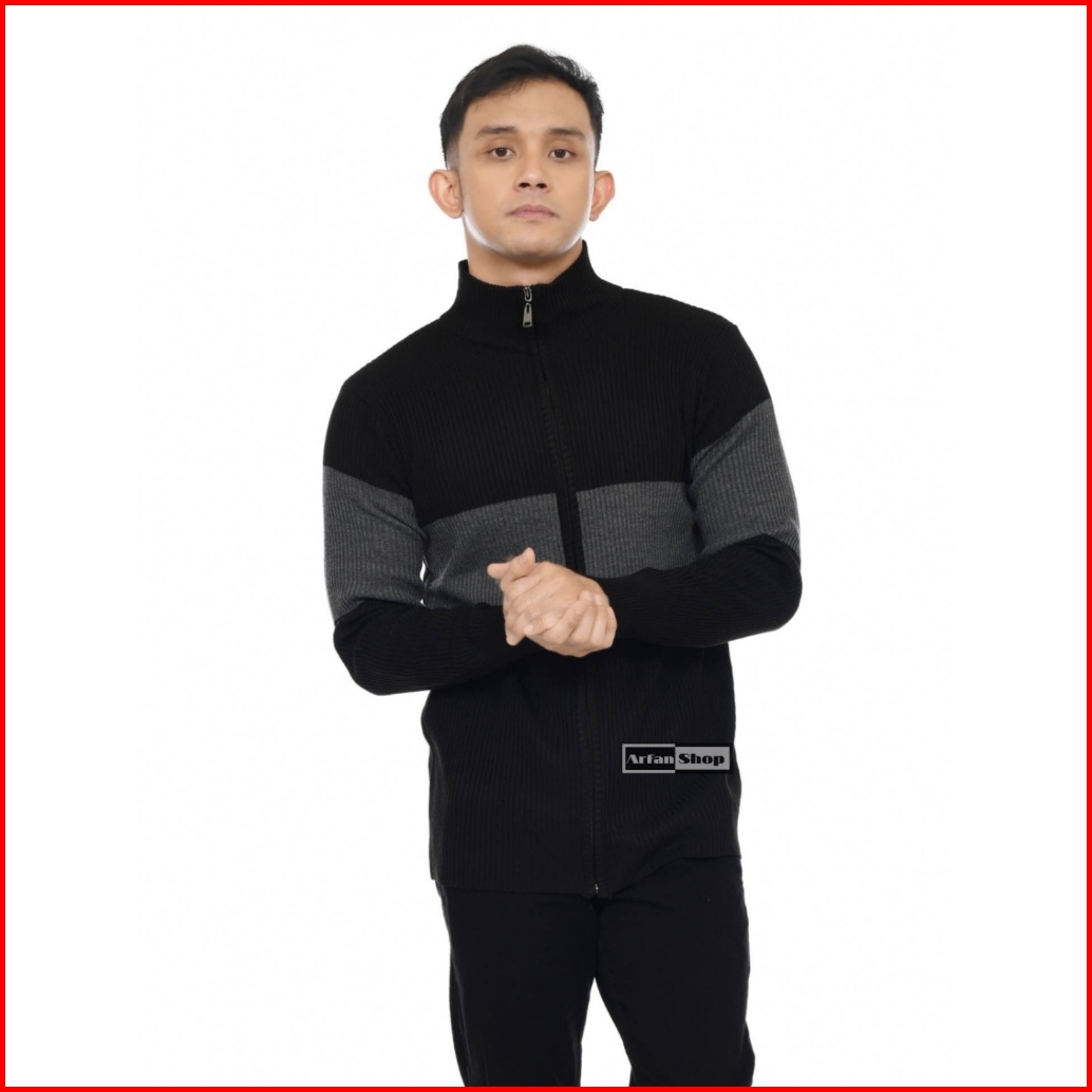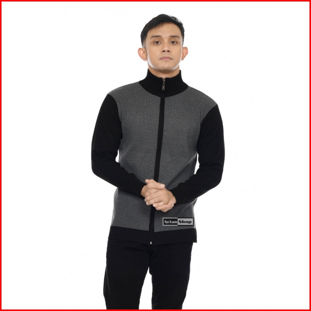 Sweater Zipper Jaket Rajut Turtleneck Pria Wanita