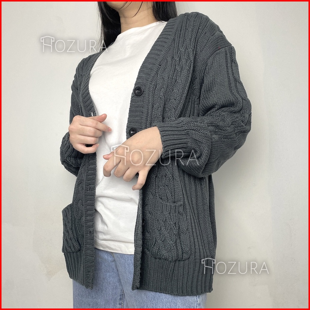 Hozura - Cardigan Sweater Rajut Kepang Wanita Premium Lanna - Cardigan Cable Tumblr Premium By Lizzy