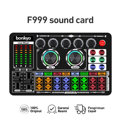 SOUNDCARD F999 FULL SET LENGKAP ORI SOUNDCARD BLUETOOTH COMPATIBLE EXTERNAL WIRELESS DJ MIXER PENGURANGAN KEBISINGAN