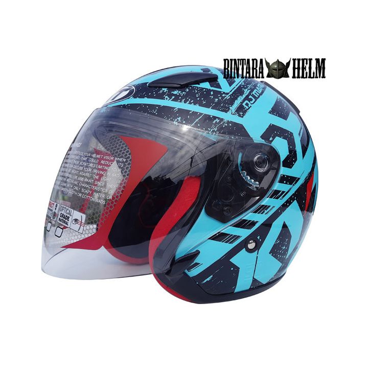KYT Helm DJ Maru Solid / seri #16 BLACK AQUA BLUE / DJMaru ORIGINAL / Helmet terlaris
