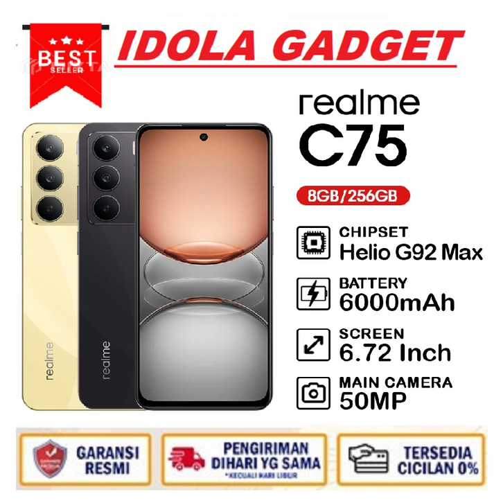 (GRATIS ONGKIR) Hp REALME C75 NFC RAM 8+256GB | Mediatek Helio G92 | Camera 50MP | Batery 6000mAh