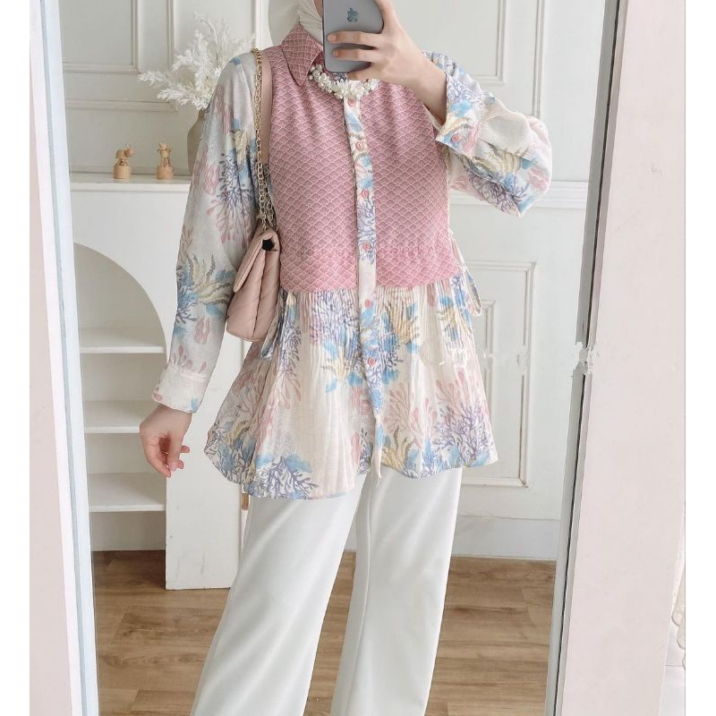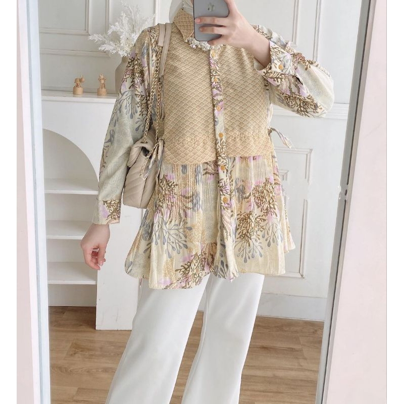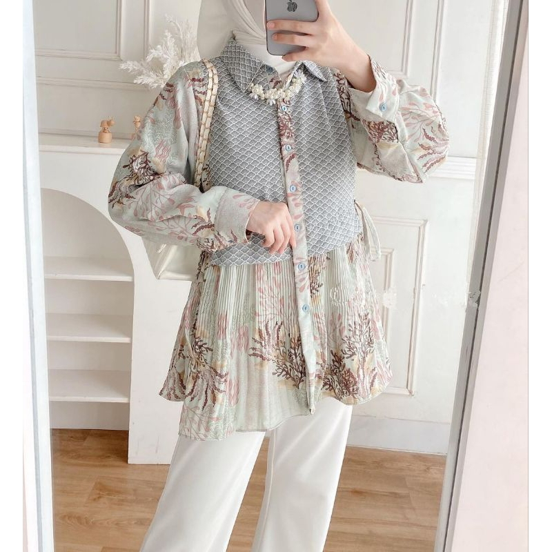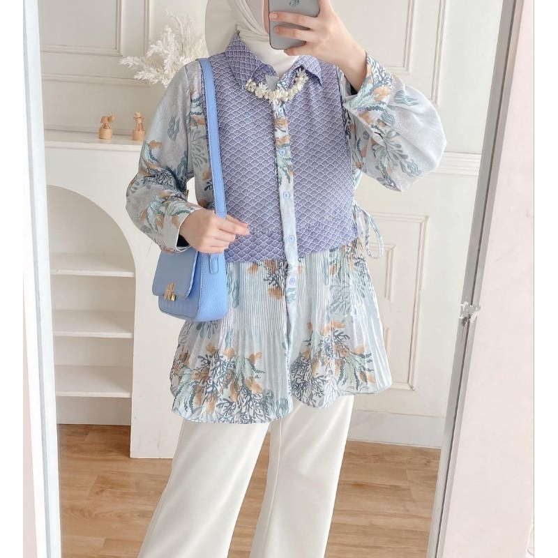 Levia Blouse Wanita Kekinian Korean Style Atasan Blouse Wanita Terbaru Motif Plisket Torino Baju Blouse Wanita Muslimah