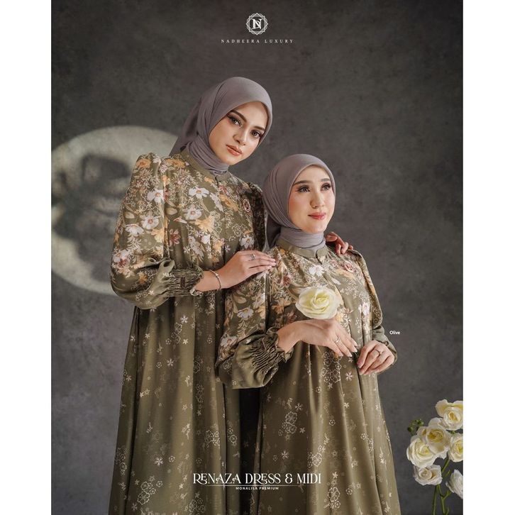(BEST SELLER) NADHEERA LUXURY RENAZA DRESS MIDI NAREZA RENNZA RENNAZA gamis terbaru nadheera luxury lebaran 2026