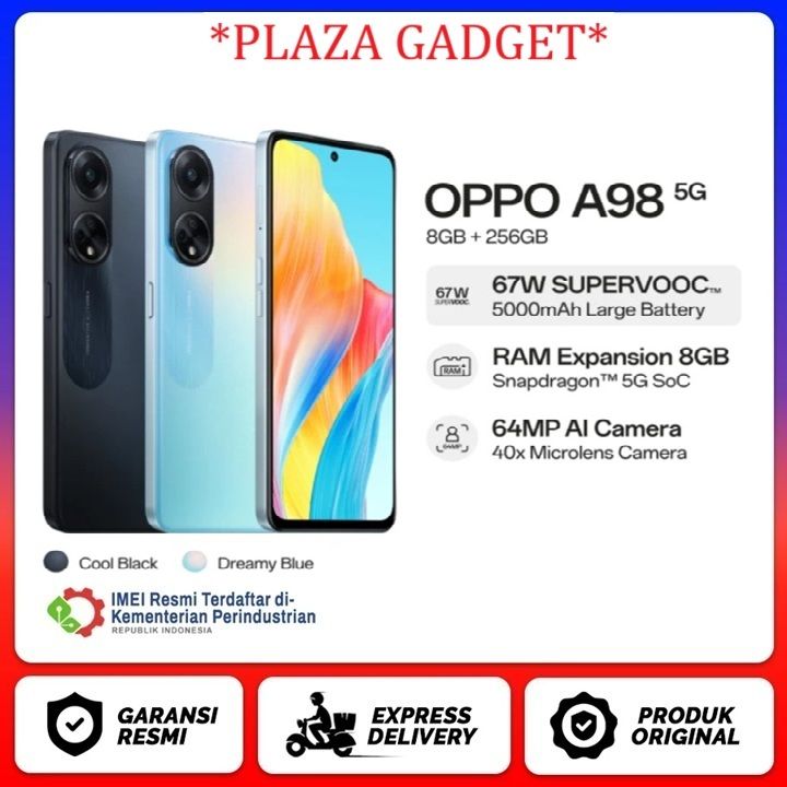 OPPO A98 5G NFC 8GB +256GB CHIPSET CPU: Qualcomm® Snapdragon™ 69 LAYAR 120Hz CAMERA 64MP SUPERVOOC 67W BATERAI 5000mAh