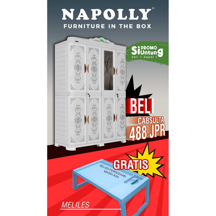 Lemari Pakaian Plastik Jumbo/Lemari Napolly 4 Pintu Cabrota 466 Dk & Cabsulta -488 Jpr Desain Elegan