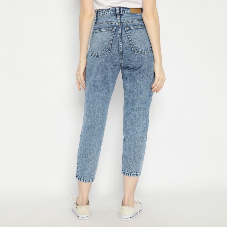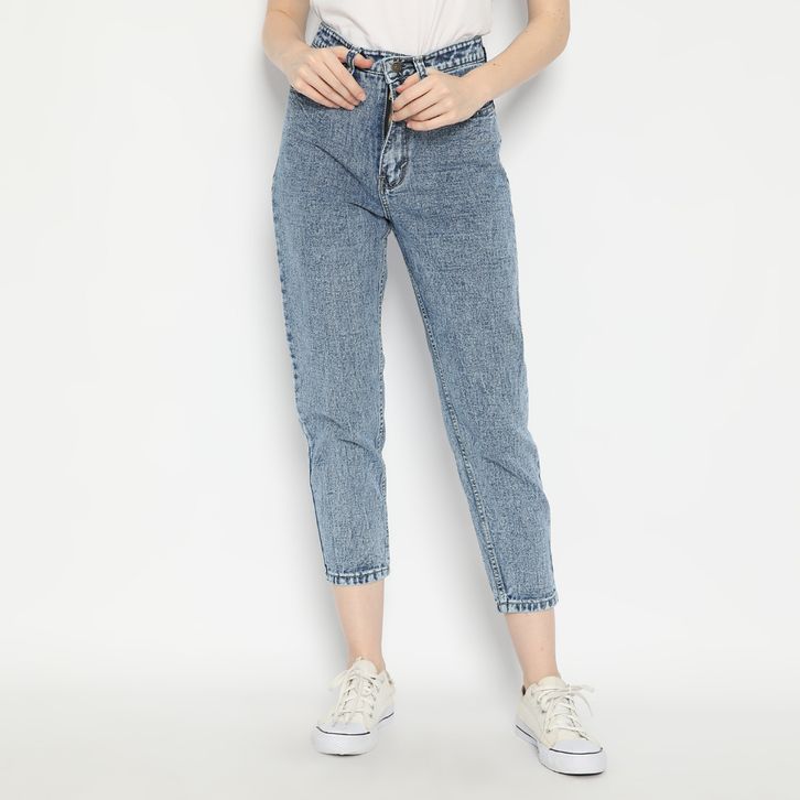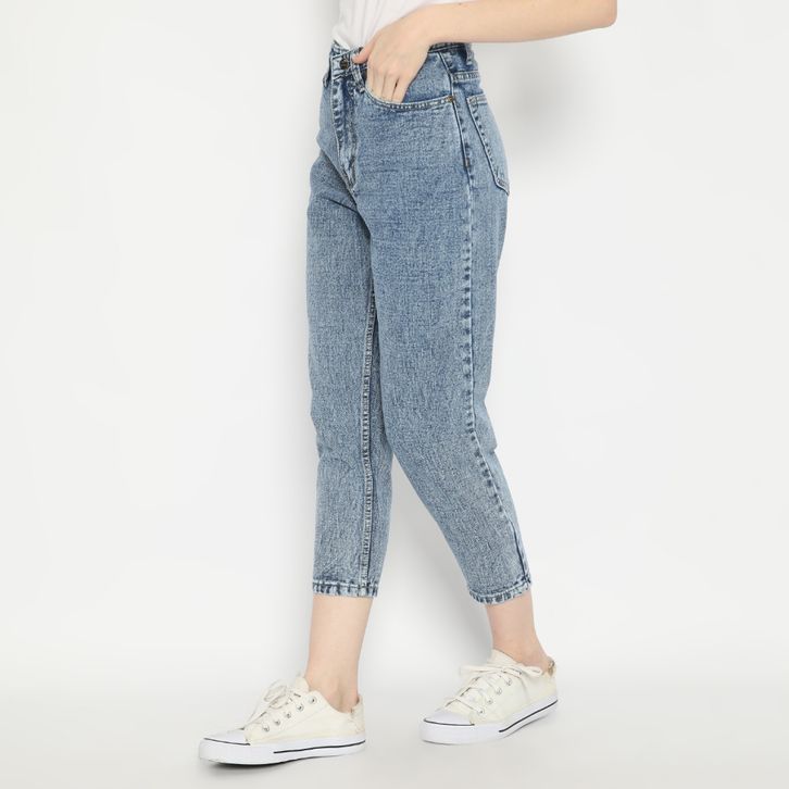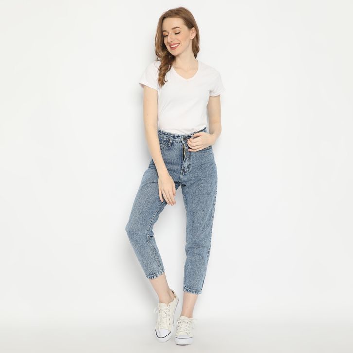 Celana Boyfriend High Waist Mom Jeans Wanita P19 - Blue Snow 26-38