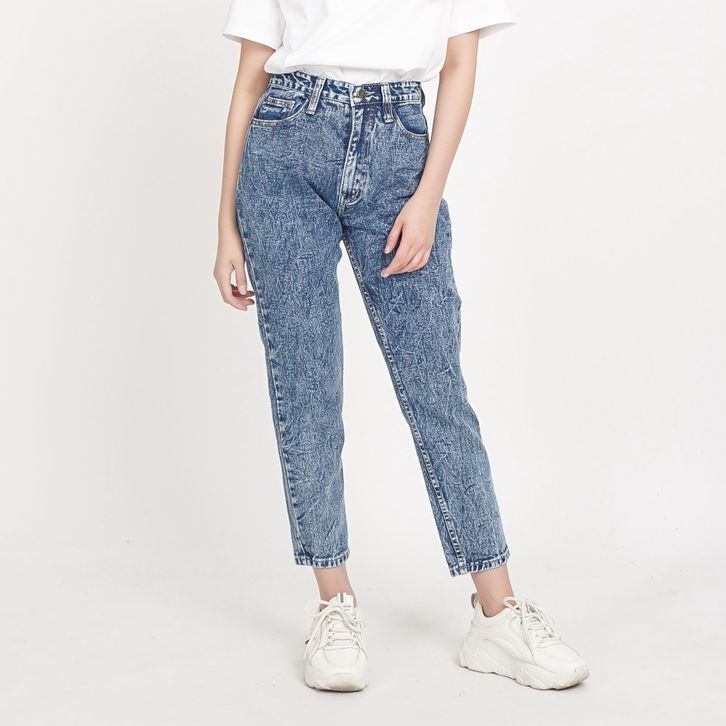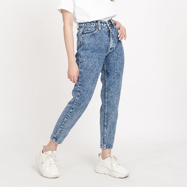 Celana Boyfriend High Waist Jeans Wanita P04 - Blue Snow 26-38