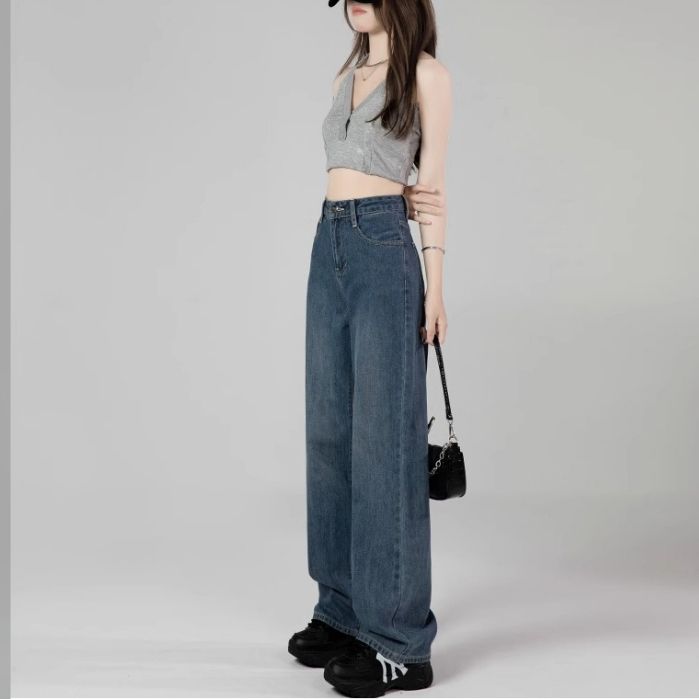 CELANA WANITA - Jeans -- Biru Retro Kulot Highwaist Jeans Wanita Korean Style