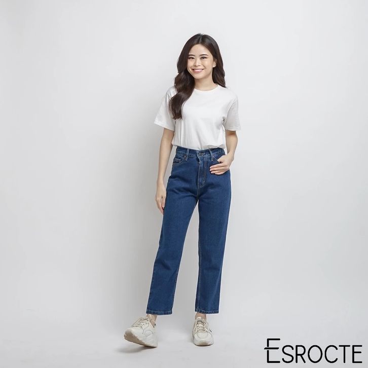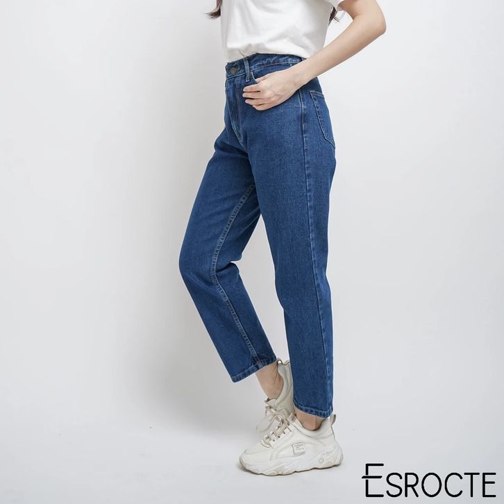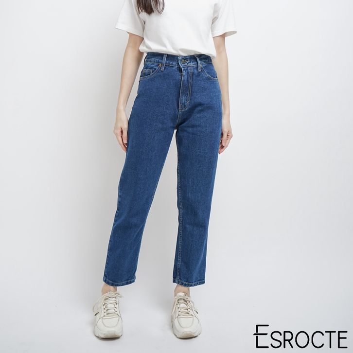 ESROCTE Celana Rubber Boyfriend High Waist Mom Jeans Wanita P43 XXX XXX- Navy 26-38 xxx