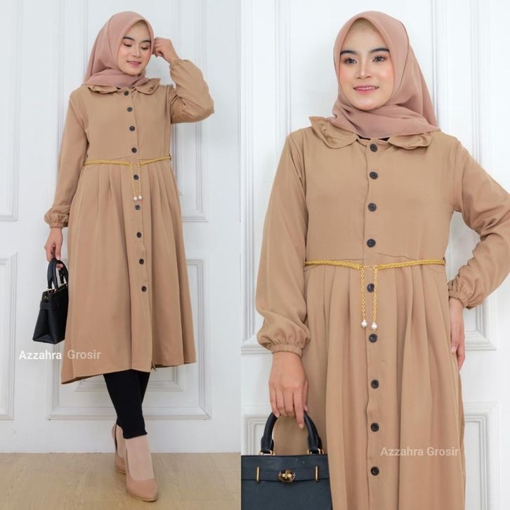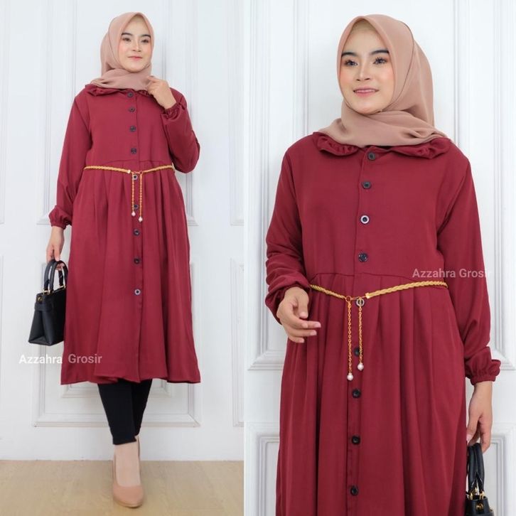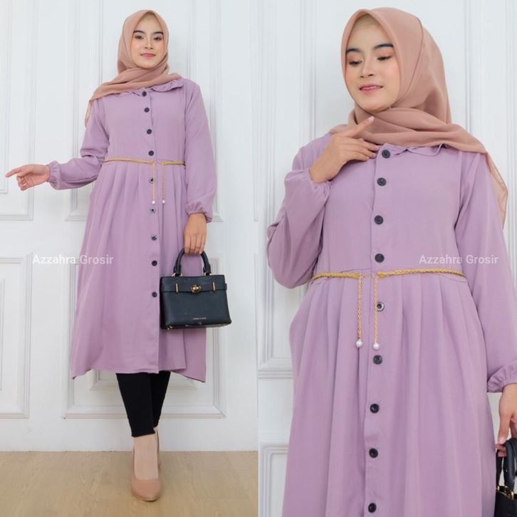 tunik wanita Long Tunik Wanita FREE BELT Katun Shakila Kancing Aktif / Atasan Tunik Muslim Wanita Kancing Panjang