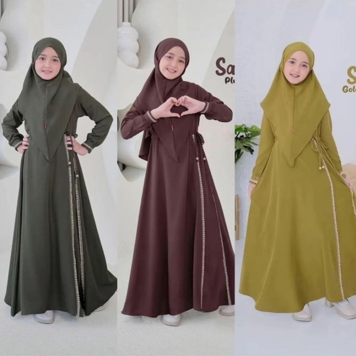 set khimar gamis anak perempuan usia 5-18 tahun / gamis polos anak terbaru