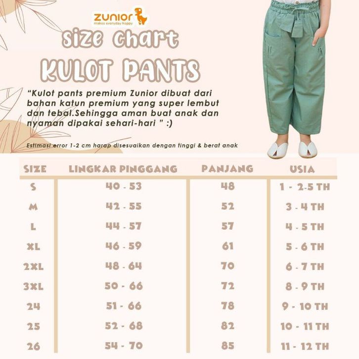 Celana Anak Perempuan Kulot Panjang Zunior Premium 6 Warna 1-12 Tahun