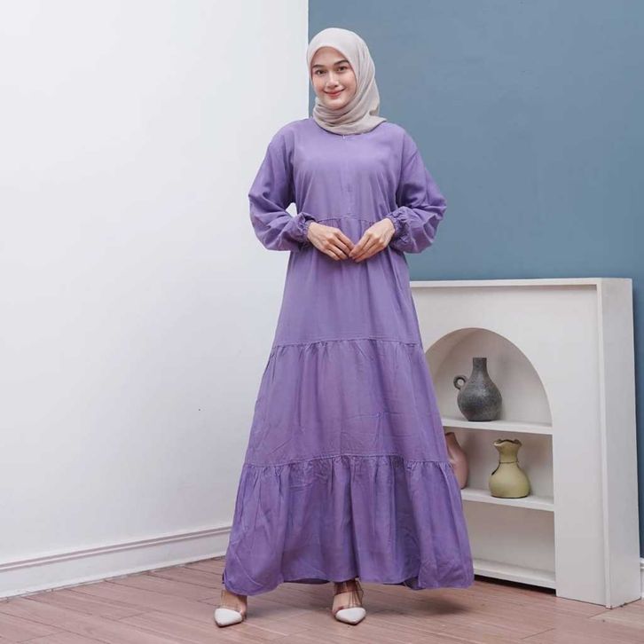 Gamis Susun Rayon Gamis Ruffle Homey Dress Rayon Polos Busui Frendly