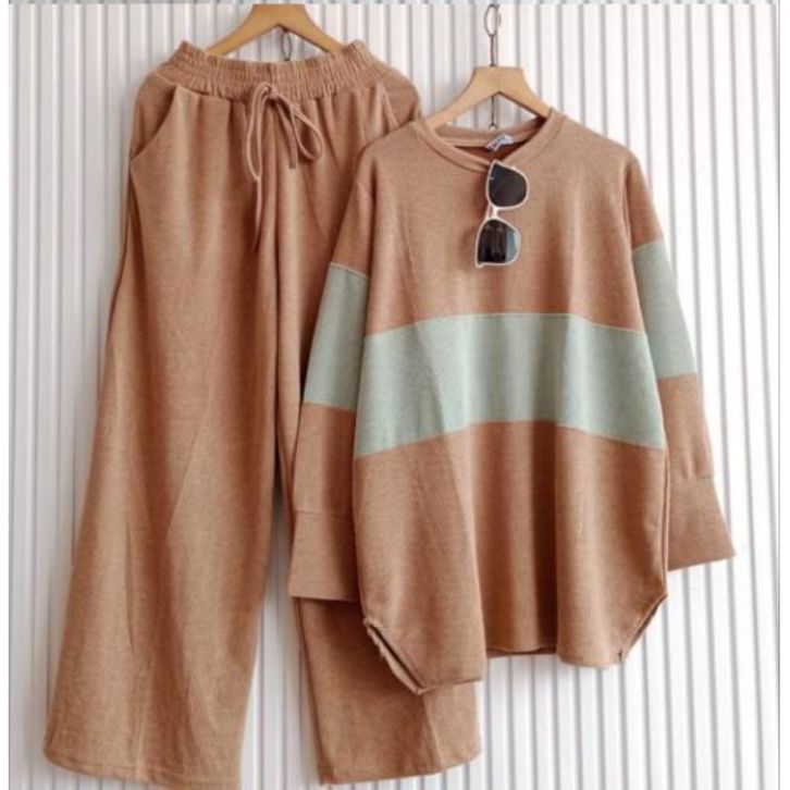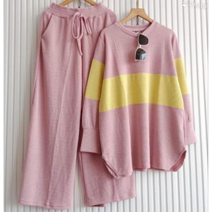 SETELAN CELANA RANANA WANITA KOMBINASI KNIT HORNET PREMIUM
