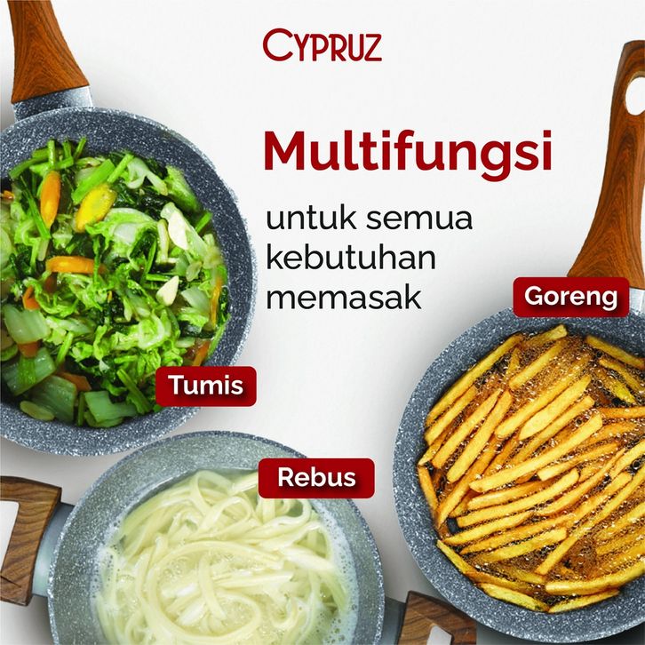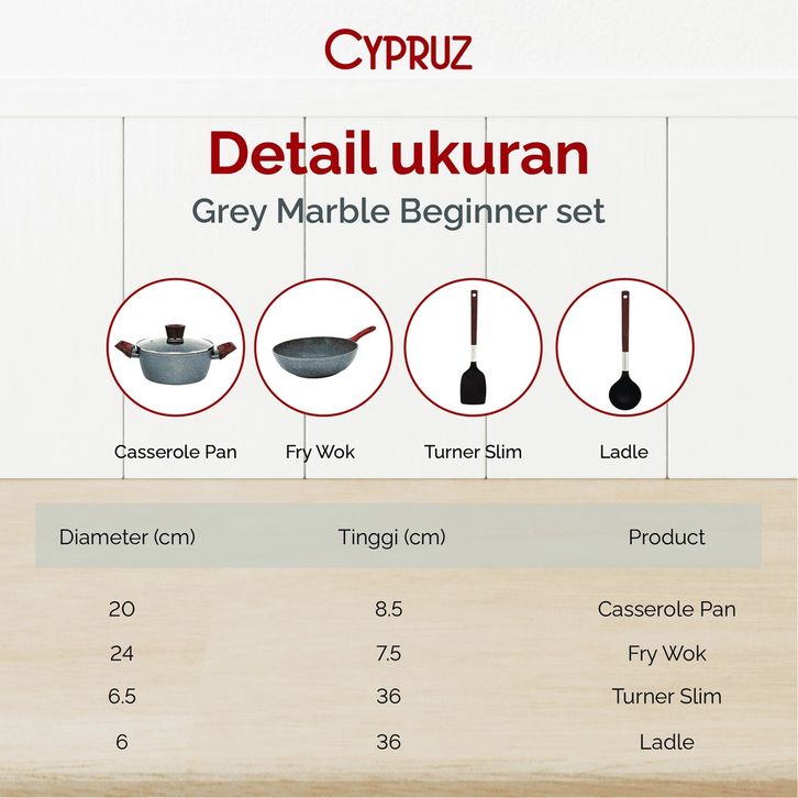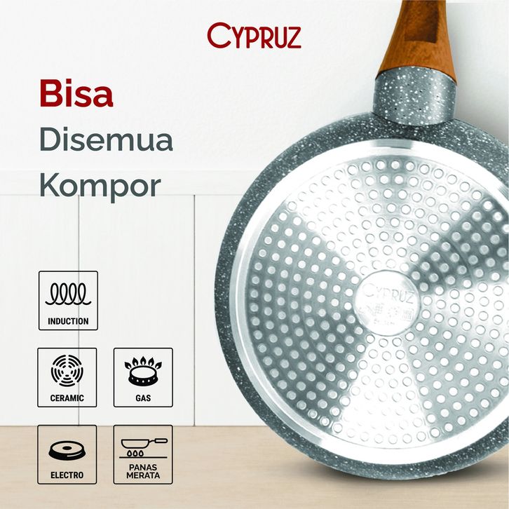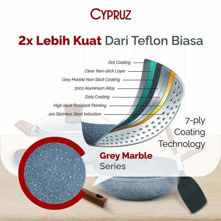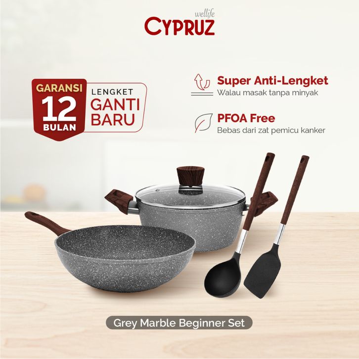 Cypruz Cookware Set Grey Marble Beginner Series Panci Set Premium Anti Lengket 5 Pcs