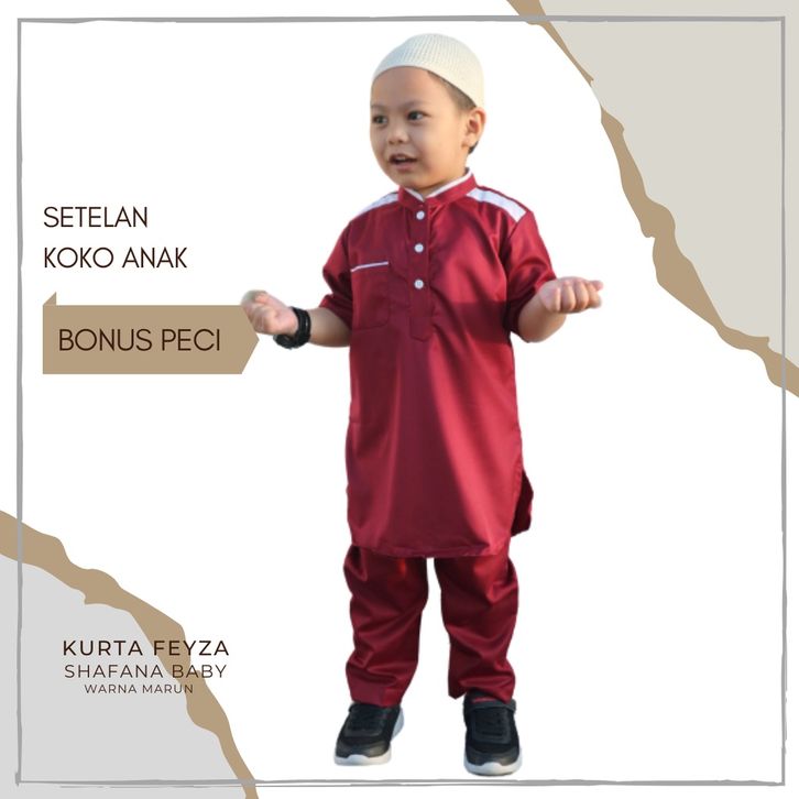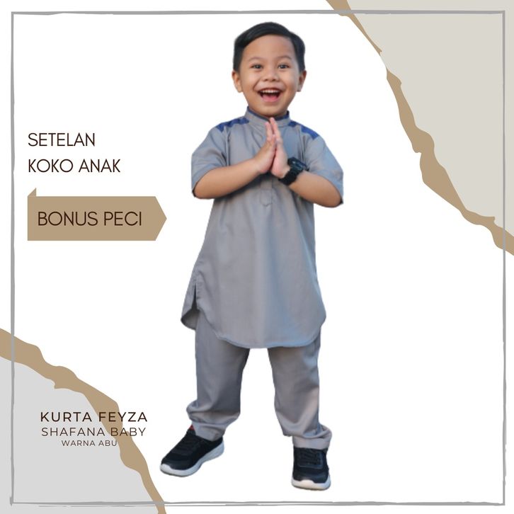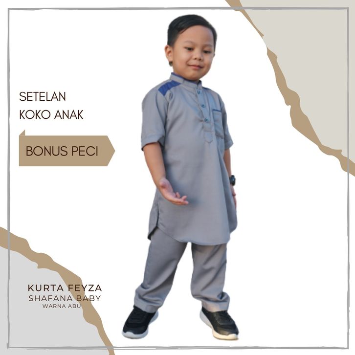 BAJU KOKO MUSLIM ANAK LENGAN PENDEK SHAFANA BABY KATUN TOYOBO FEYZA USIA 3-9 TAHUN WARNA MOCCA