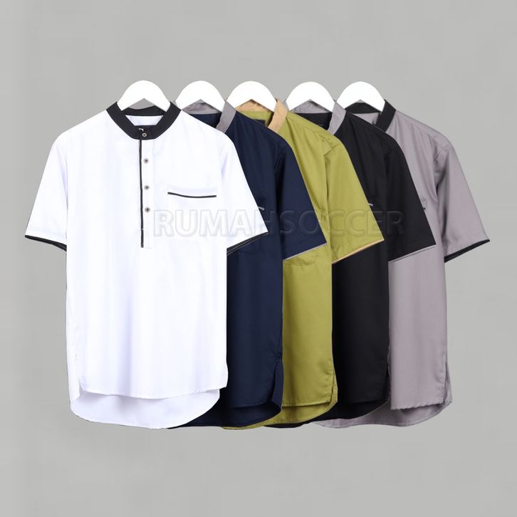 Baju Koko Pria Lengan Pendek Polos AKHTAR Bahan Katun Toyobo Adem Terbaru