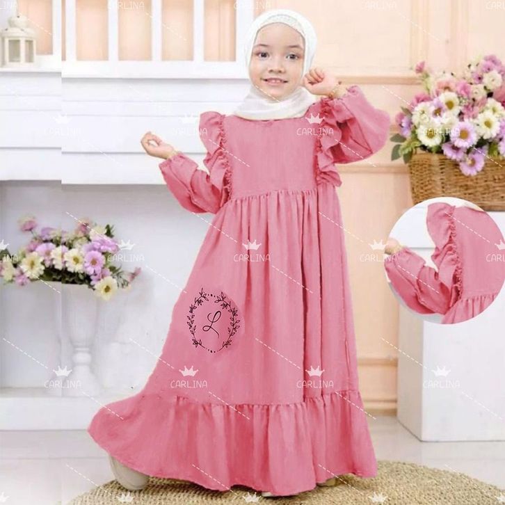 GAMIS MANASIK ANAK SOLEHA RUFFLE NAMIRA CANDY 2-13 tahun KIDS DRESS