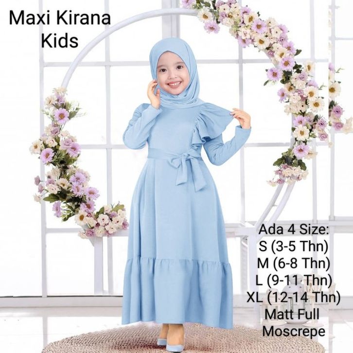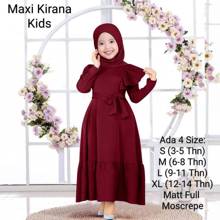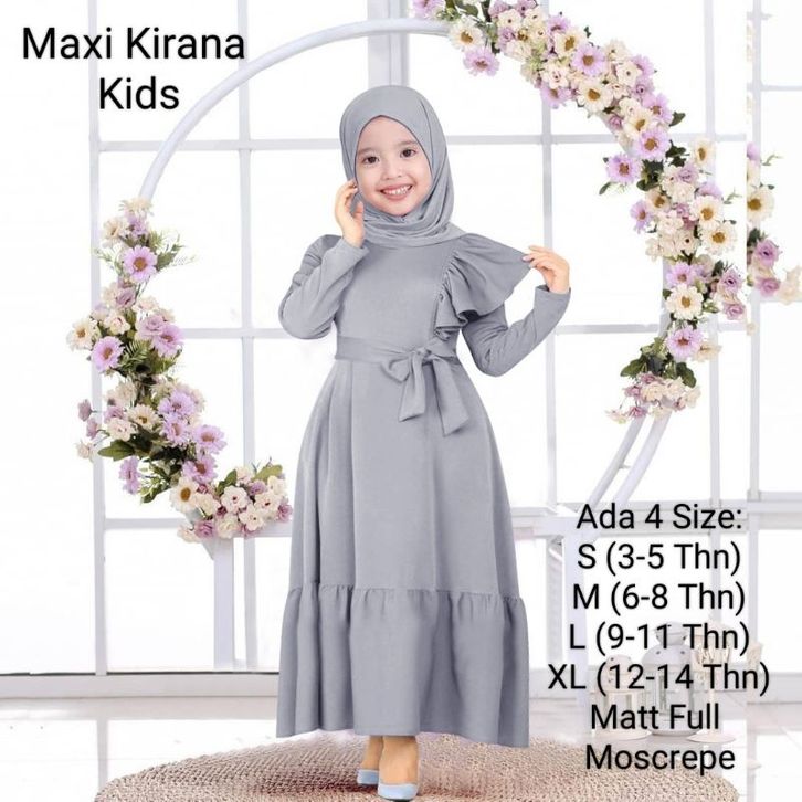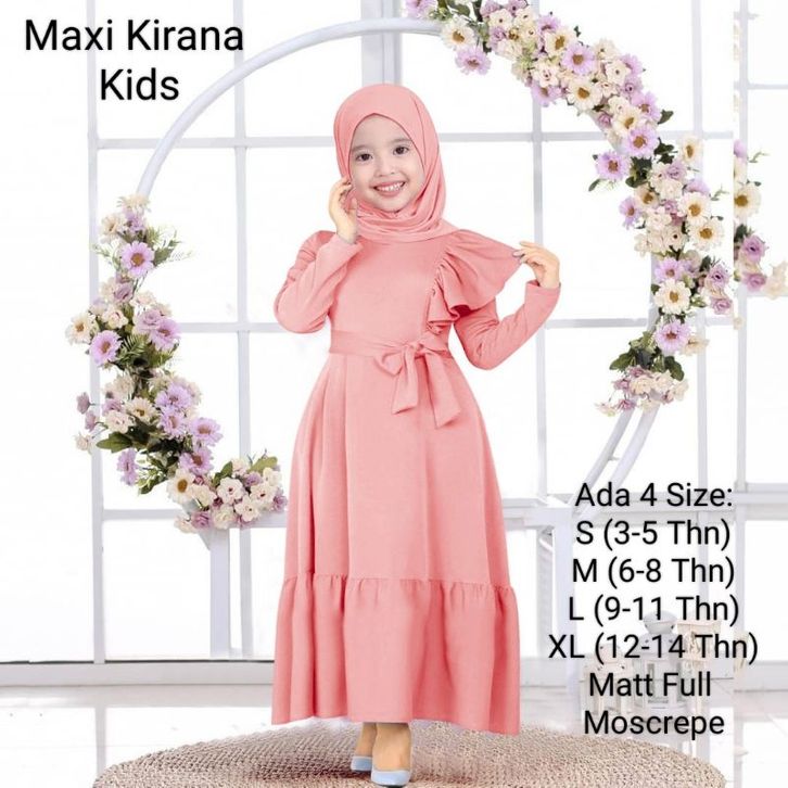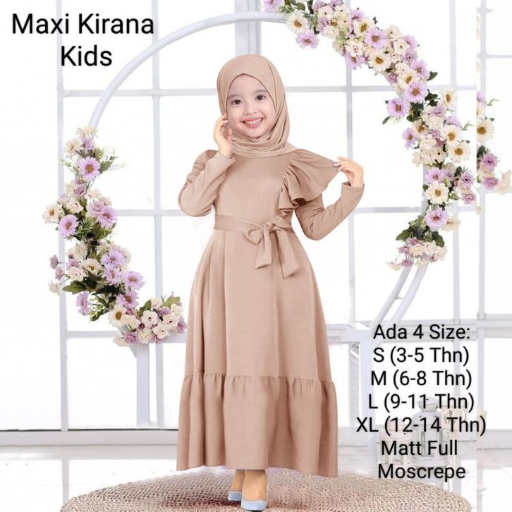 Gamis Anak Wanita Dan Remaja Abg Perempuan Model Terbaru Kekinian/Maxi Kirana Kids 3-14 Tahun Matt Full Moscrepe