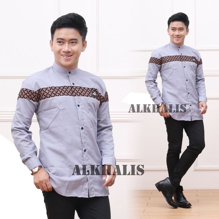 BAJU KOKO PRIA DEWASA - Alkhalis Baju koko Lengan Panjang Motif Batik Bata