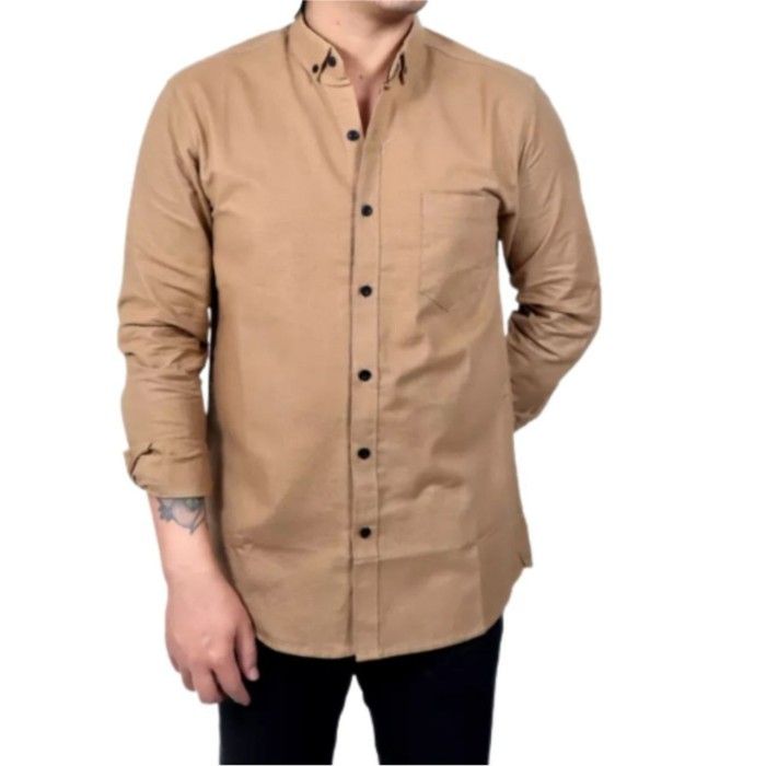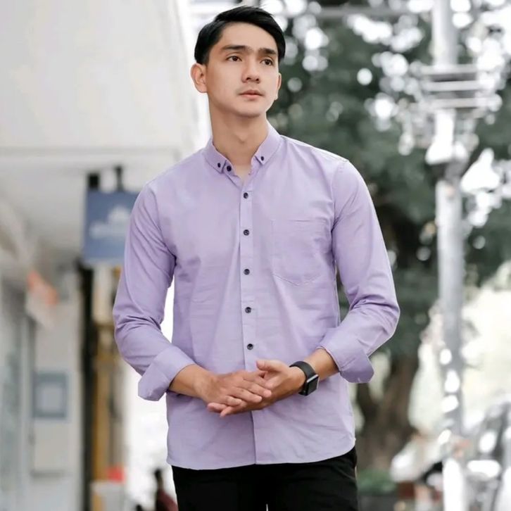 Baju Kemeja Pria Lengan Panjang Polos Abu-Abu Navy Hitam Maroon Putih Hem Cowok Keren Kantor dan Kasual Bahan Katun Prem