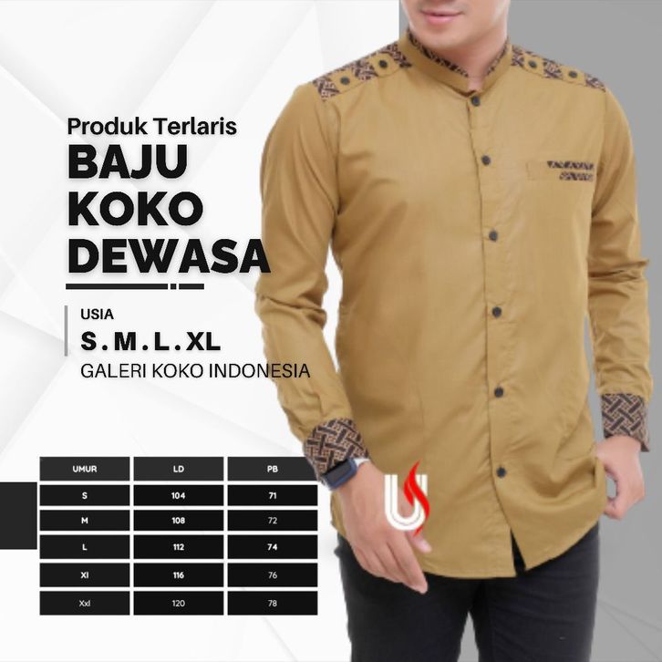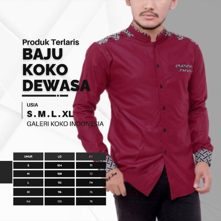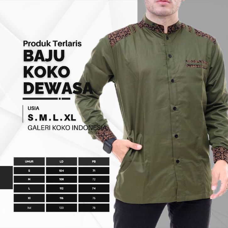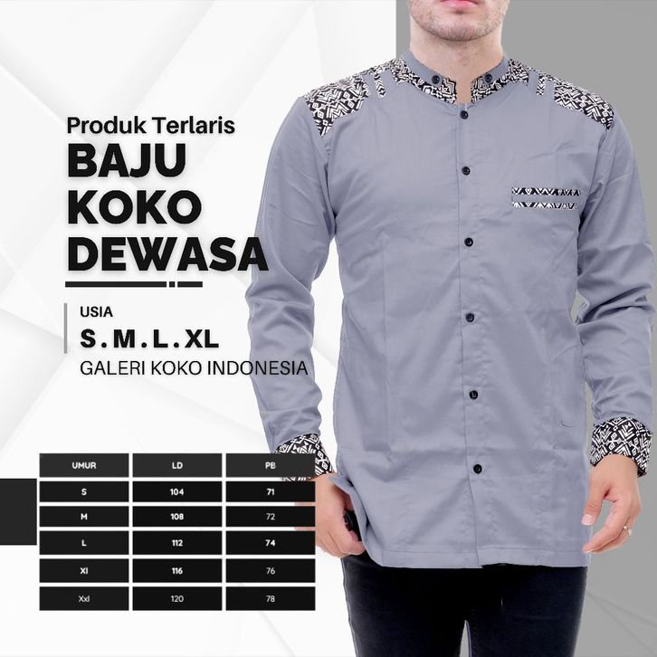 BAJU KEMEJA KOKO PRIA LENGAN PANJANG KOMBINASI BATIK M L XL TERBARU