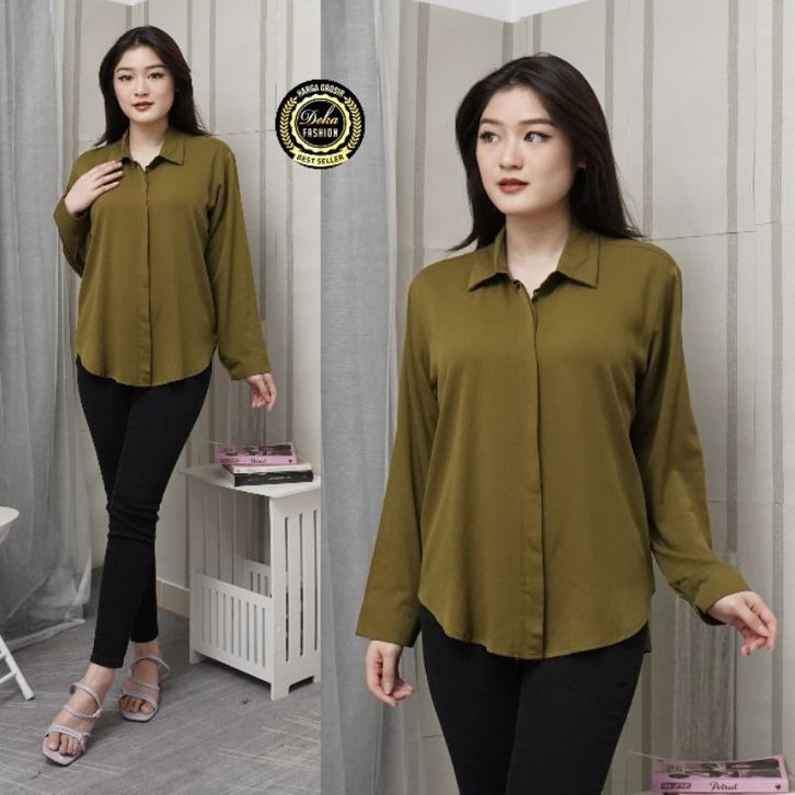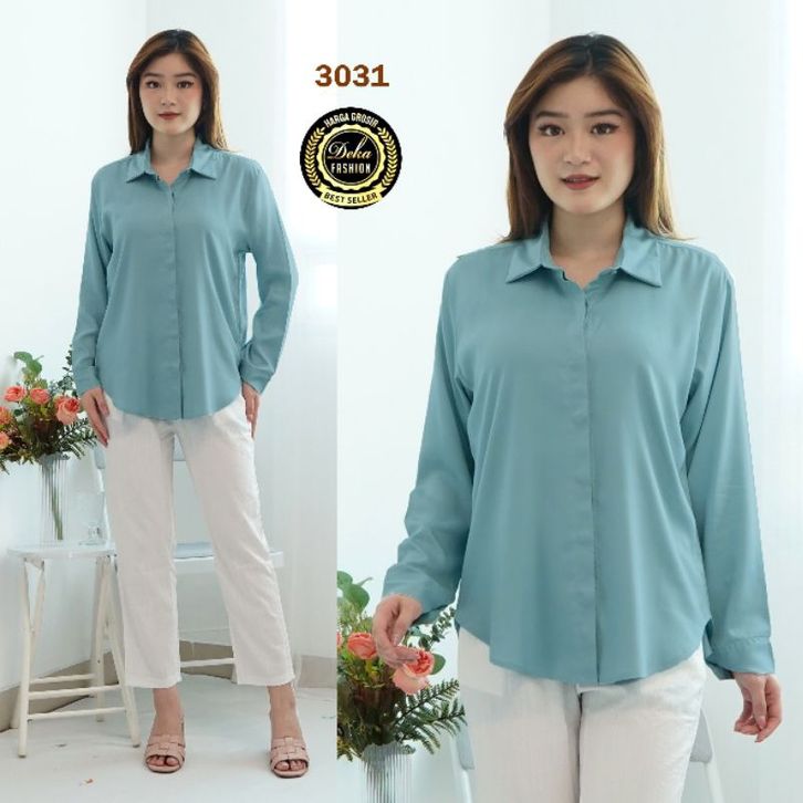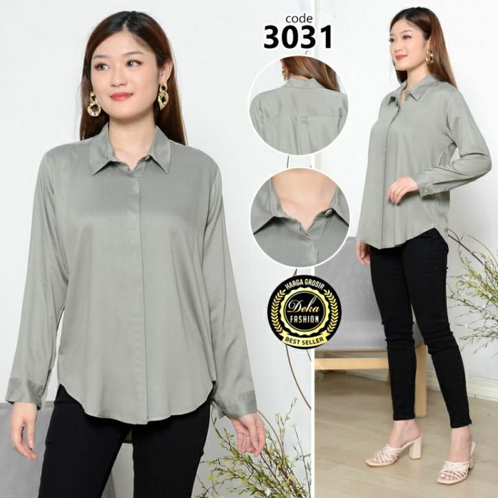 KEMEJA WANITA / KEMEJA TANGAN PANJANG DOUBLE CREP KATUN TWILL 30S - 3031