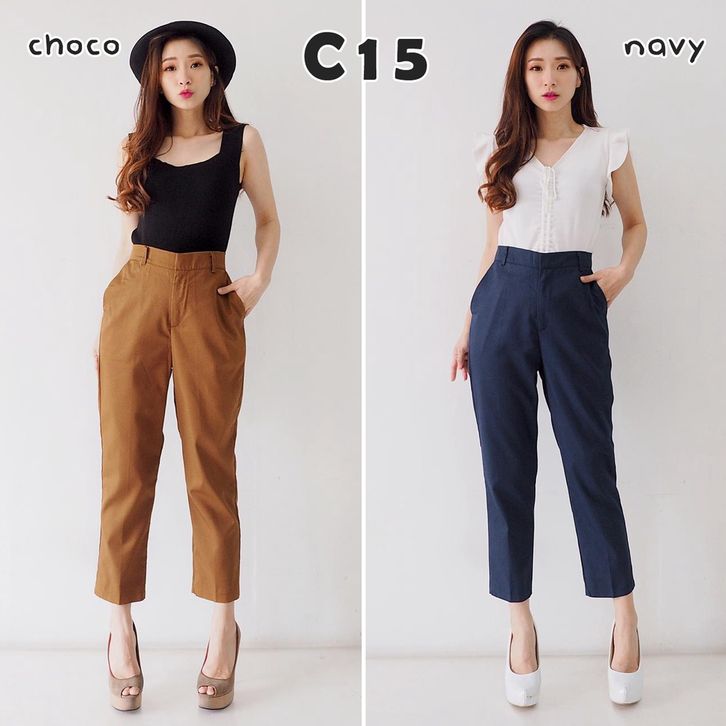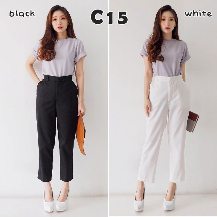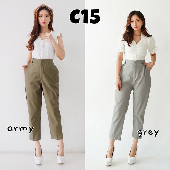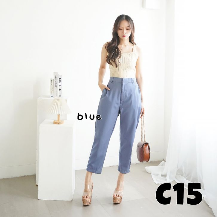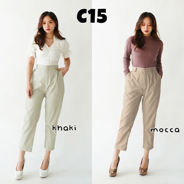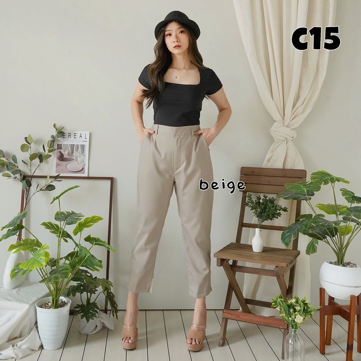 Celana panjang nanggung polos pergi kuliah jalan santai casual pants fashion cewek wanita murah 15