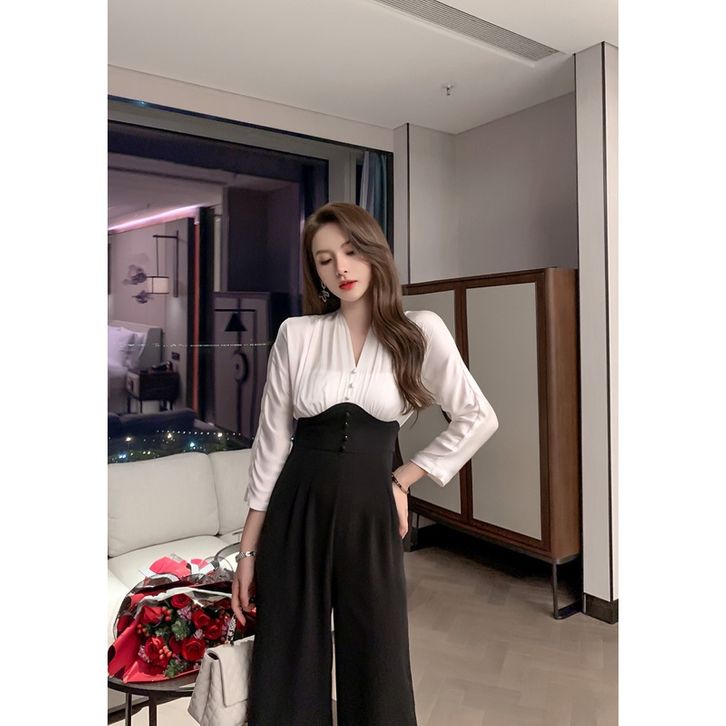 Korean Pakaian Wanita Jumpsuit V-Neck Lengan panjang 1480 (S-XL)