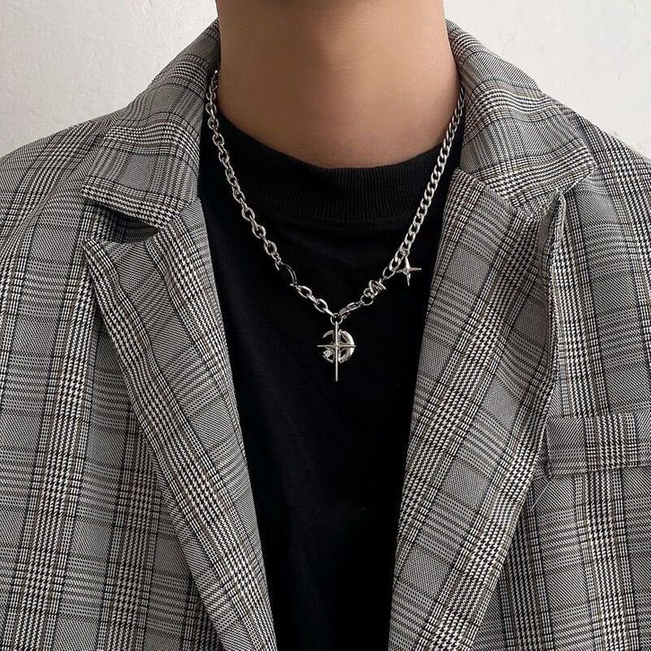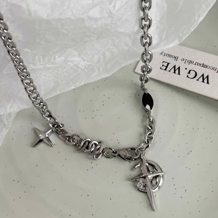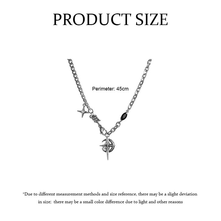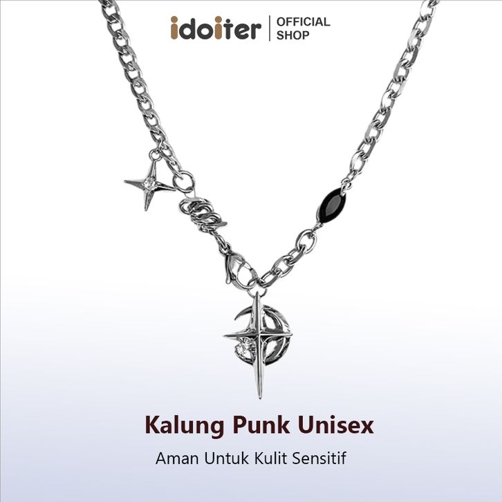 Kalung Pria Bintang Batu Permata Hitam Kalung Hip Hop Gaya Rantai Punk Pria Wanita kalung Liontin